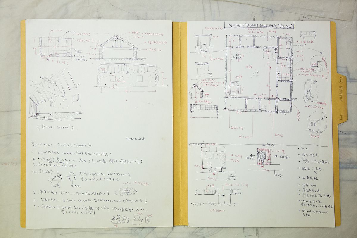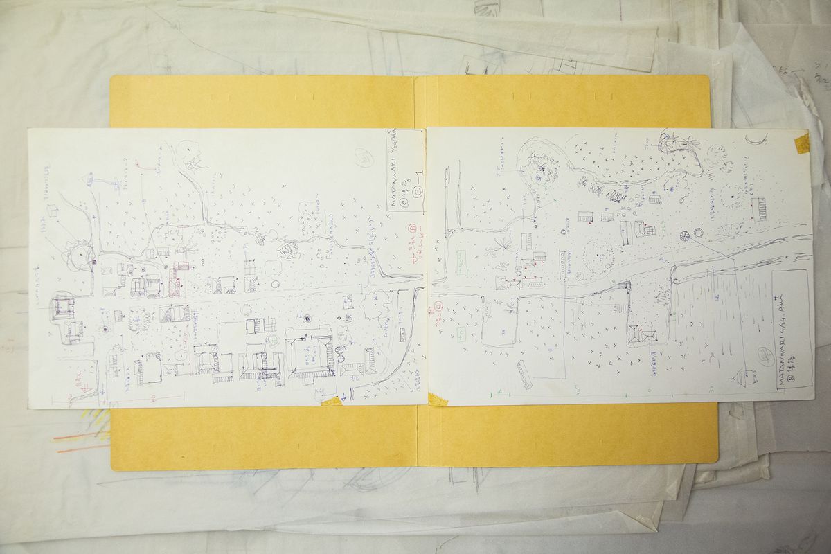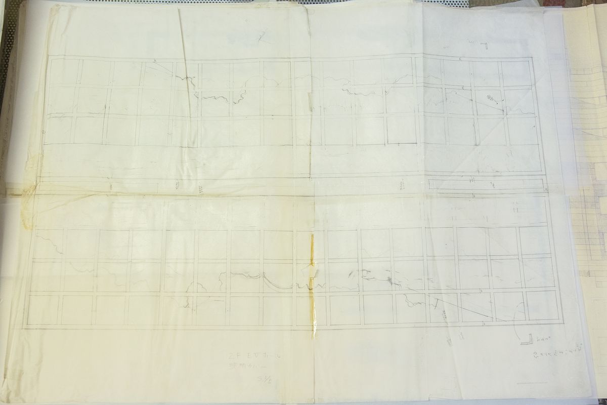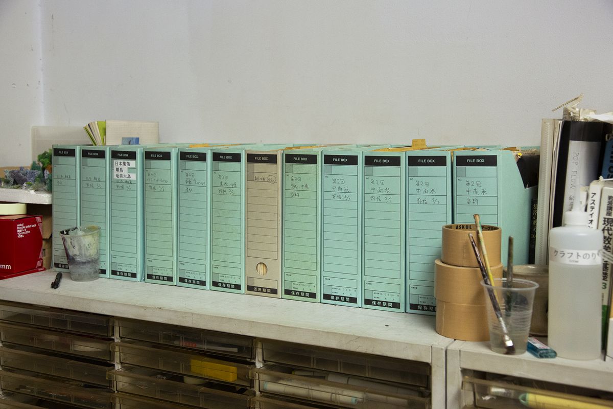 In his atelier, Hara keeps boxes, each identified by a survey’s year and location, containing sketches and notes about each encountered village, its surroundings, the arrangement of its houses, its spatial structure, residential layouts, sectional views, and the design of individual houses’ features. We were astonished at the meticulousness and sheer quantity of these records.