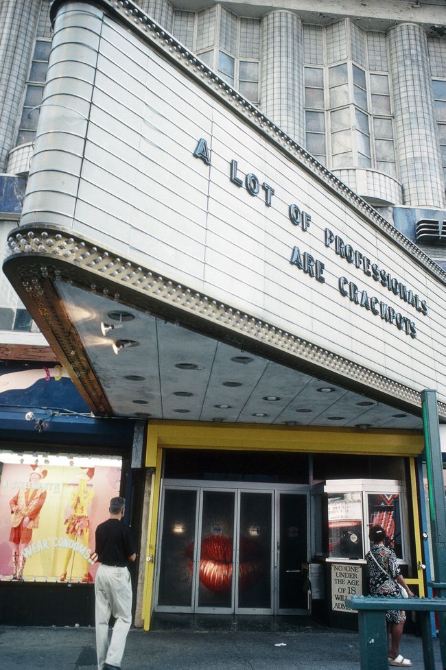 Somewhere in the American Midwest lies a city whose street signs tend to change unexpectedly. People can be seen walking around with ladders, unscrewing and rearranging metal plates at will, and one might walk into a house on Hayes Street only to find oneself, upon leaving, at the intersection of Ruby Street and Pearl Street. This perpetual instability provoked in one resident the hallucination of all the city’s “walls on pivots controlled by subterranean machines, so that, after he had passed, they might suddenly swing to face another direction.”1 Described, by this same resident, as “a great maze—forever adjustable, therefore unlearnable,” the city is an exercise in disorientation: a place that renders useless all traditional frameworks of location and direction.2 Further east, there is another city, and in this city, a neighbourhood extending roughly the length of 42nd Street between Seventh and Eighth Avenues. Pornographic theatres proliferate (as do other sex-based enterprises) interspersed with conventional theatres, stage equipment stores, and rehearsal spaces. Drugstores, liquor stores, and diners cater to more sanctioned corporeal needs, providing a place to stop for food, drinks, and other essentials between shows. Whispers of imminent closures and hypothetical office towers grow louder by the day.