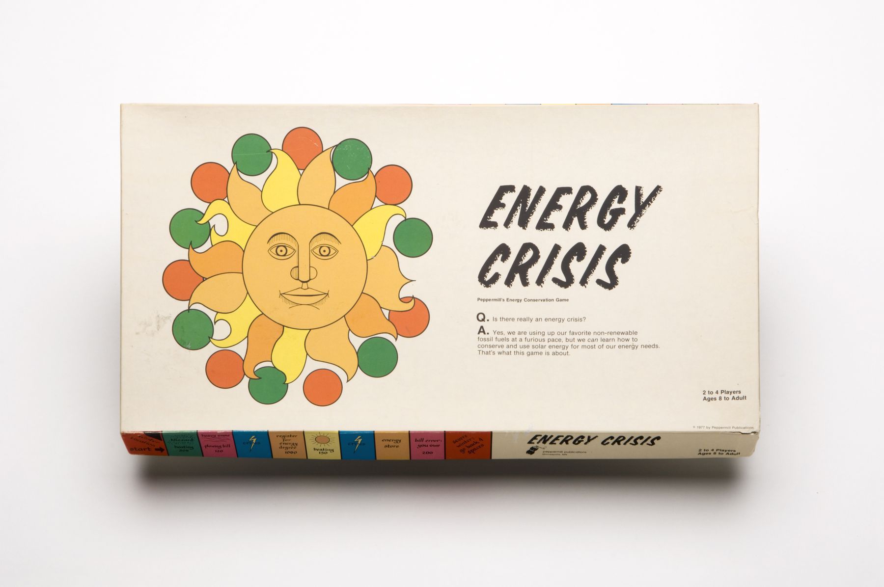 Historians and researchers often see games as a source of information about the customs and concerns of a given era. The way games work, and their meanings and goals, are linked to the social context in which they are invented and popularized. Indeed, some consider games to be a primeval part of civilization.1 Towards the end of the 1970s, as energy conservation and the search for alternative sources became priorities, other games appeared on the market that took up these problems and gave players the chance to simulate solutions to them. In The Mileage Game, the winning player had to cover the greatest possible distance while wasting a minimum of energy; and Energy Quest involved research into and acquisition of a variety of new forms of energy.