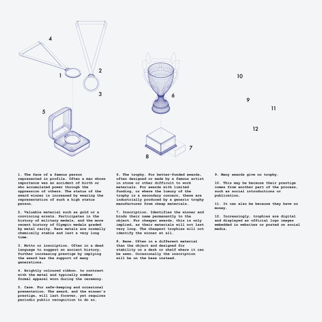 The proliferation of architecture awards, in particular since the 1970s, can be seen as another symptom of the neoliberal paradigm that reduces human relations to competition. The increase also reflects reinvigorated politics of quantification and classification, with historical roots in rigid class structures, imperialism, and colonialism, now retooled by the digital revolution. With technocracy and neoliberalism in mutual crisis, the contradictions of today’s awards system mirror a larger conflict over whether value is defined in economic terms or human ones.