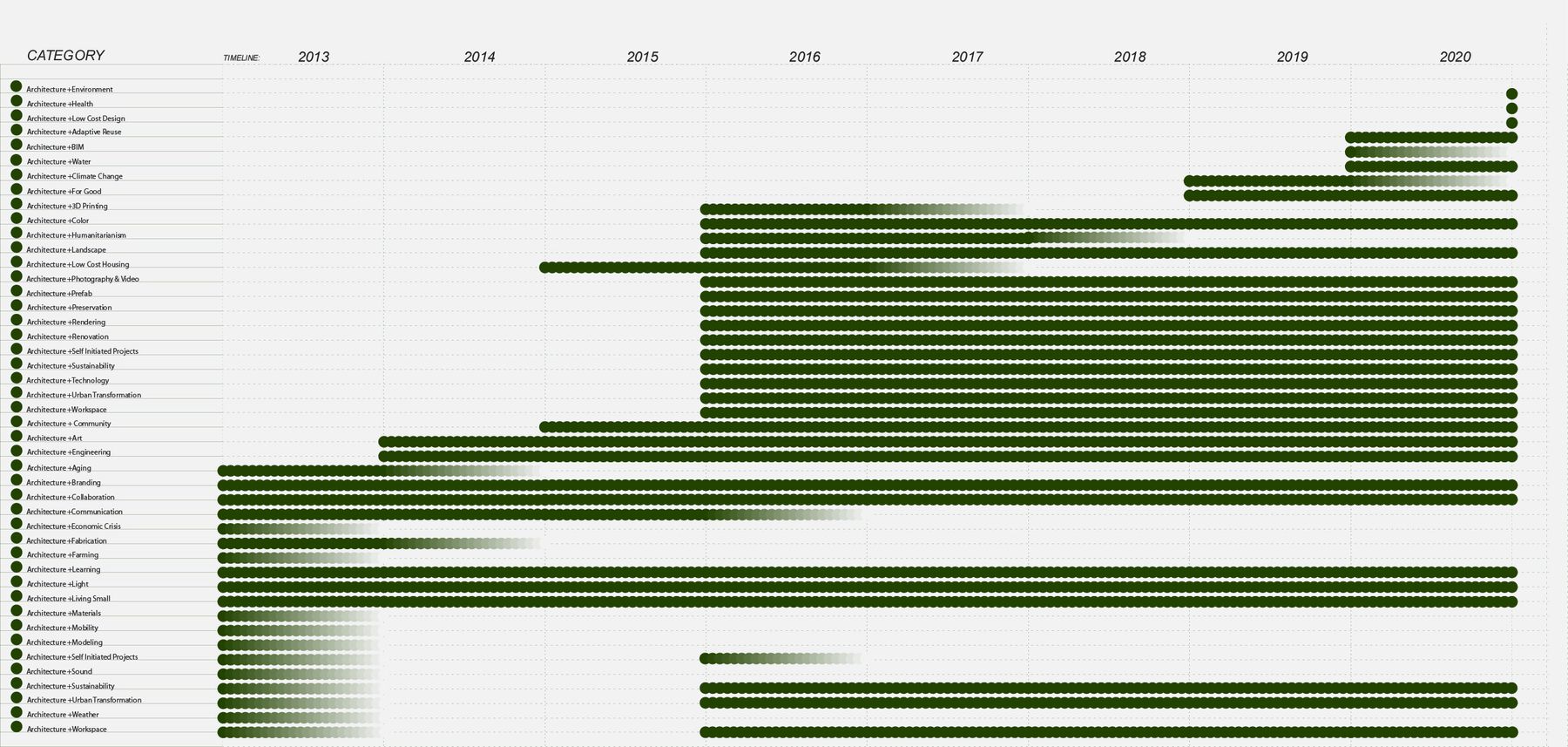 It is a sector that sustains itself—and increasingly supports traditional architecture media—by constantly creating new categories, following trends and pruning awards that are no longer relevant. The architectural media company Architizer is a case study in how to meet the market’s demand for awards. Essentially a portfolio site for architects to show their work, it introduced an awards program with 51 categories in 2013, and since then, the A+ Awards program has blossomed to over 120 awards. Fee-paying entrants need to believe they can win, so when one category becomes too popular, it buds into two or more.