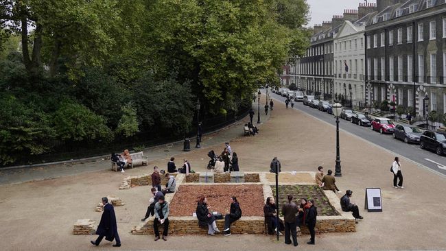 - Dry stone walling is a traditional practice both in Shigushan, but also here in the British countryside. We built this one-to-one scale foundation of a village house on Bedford Square in London as a critique of privately owned public spaces in London. To build dry stone walls in London invokes the British history of enclosure, during which common land was transformed into privately owned parcels. Dry stone walls served as the physical inscription that made land legible, divisible, and governable. In this sense, the domestic foundation superimposed onto a privately owned public space unsettled entrenched distinctions between public and private that enclosure helped consolidate in Britain.