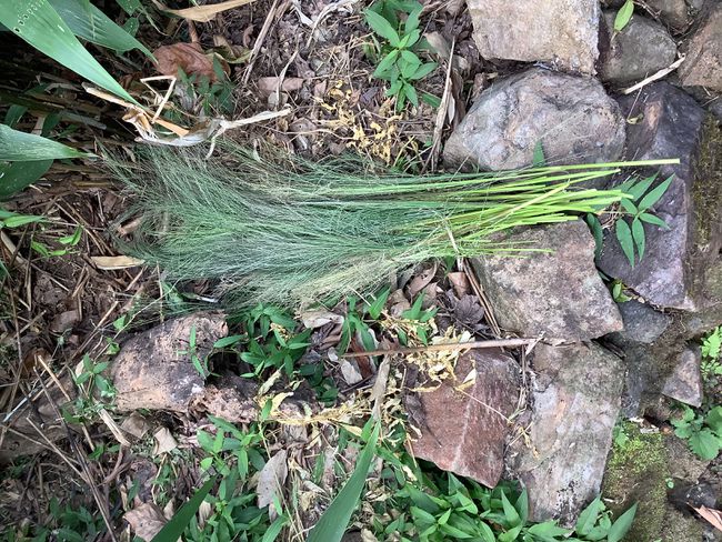 At a few places, Federick observed how the hardwood stumps had been gathering moss by the trailside, while the larger trunks had been taken away for making wooden huts in the forest. These stumps were also being swallowed by synsar (broom or jhadu grasses) and siej (bamboo). These are minor disturbances in the forest that allow light into the dense and tropical canopied expanse—to air the forest light, as it were. Both synsar and siej spread rapidly through these forests, especially around patches of forest clearing or secondary growth, taking over the grass along the forest’s edges. As these grasses spread rapidly, Khasis forage them. Synsar is primarily used to make brooms sold in the market. Siej is used according to its age, form, and structure: siej shrah (long, hard, tall bamboo) is used for construction; lung siej (young bamboo stock) is used for pickling and food; siej long (perfectly hollow and straight bamboo stem) is used to form irrigation pipes in the terraced hills; lighter, thin, and pliable bamboo is used for weaving. Bamboo proliferates and shapeshifts in these forests between genus and species, whose colours, forms, and leaves vary. The abundance and multiple affordances of bamboo is uncaptured in the singularity of the English descriptor for the family of grasses. Siej is ubiquitous, and Federick was building a whole world with it.