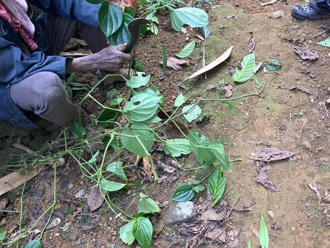 As we walked, I was intuitively drawn to noticing the trails as pristine places—bird calls and wild boar grunts echoed in the distance and the trails were overgrown with moss and mulch from the rain. However, my earlier conversation on forests and empty lands gradually pulled myself into noticing human presence in these forested trails. Federick pointed out to me how Khasi villagers had sculpted deep indentations on betel trunks to climb on their bulky stems to fetch leaves or nuts from the branches, since carrying ladders into the forest was impossible. Khasis make rungs to forage betel leaves and nuts to make Kwai, or betel nuts rolled with betel nut leaf and lime. The endless chewing and spitting of Kwai are the socially acceptable form of narcotic consumption, often the basis of any Khasi social gathering. The mild arecoline from the betel nut gives a tizz to new initiates.