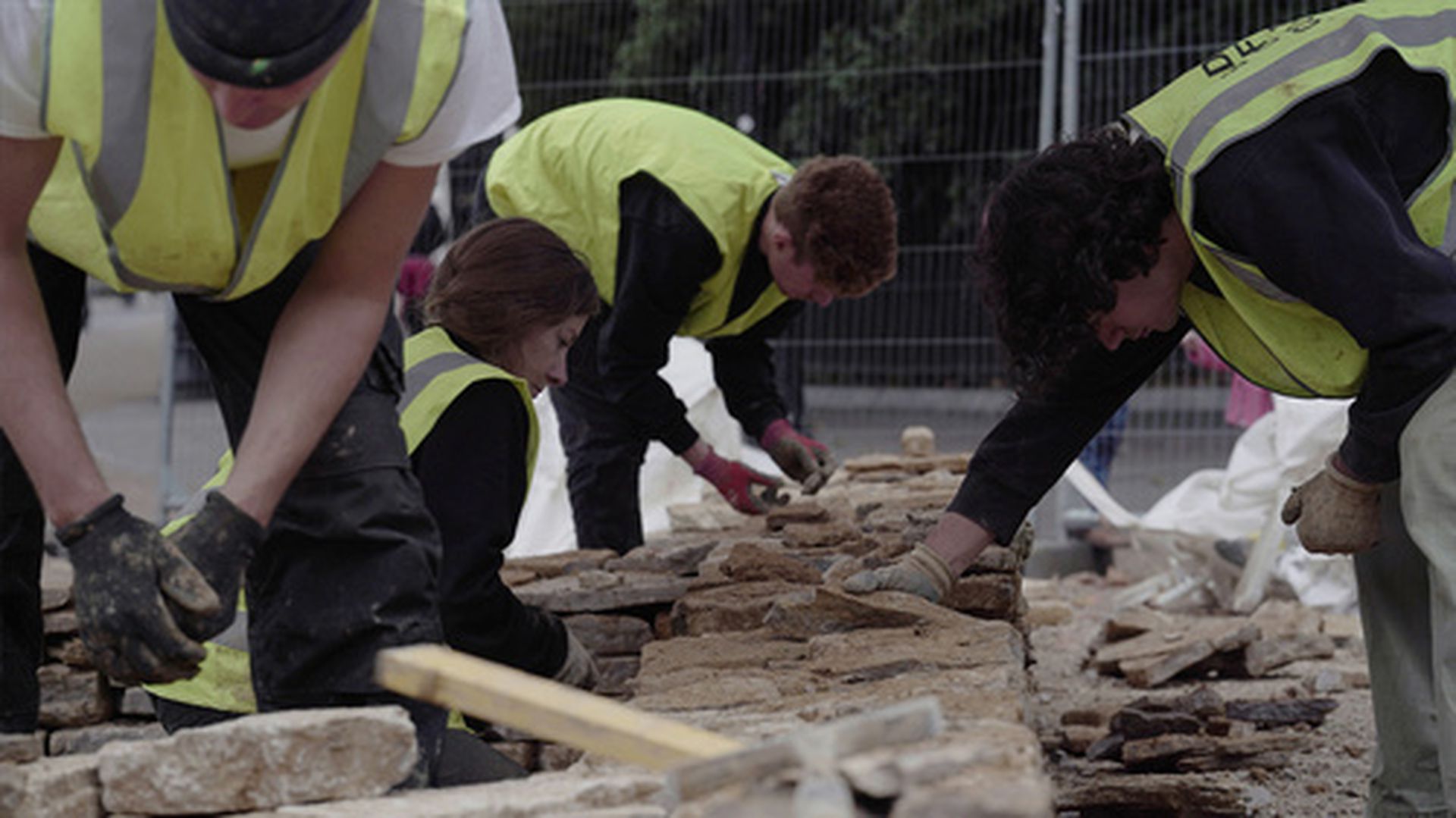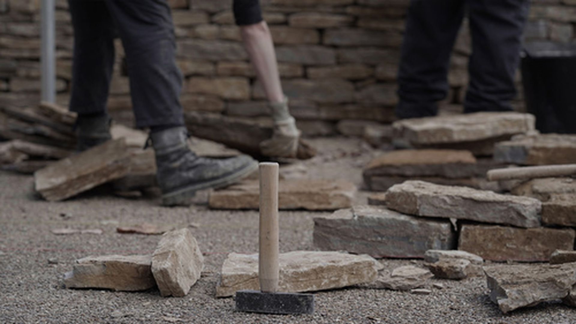- This dry stone foundation is a temporary assemblage of materials coming from the earth. Pullback stones, sand, soil, wood chips, recycled glass aggregates, hemp blocks and herbal plants. After the installation, all the materials had a second life: either back to the quarry, to communal gardens, or to the next building site. The site operated as an evolving common. It was a lunch spot for students and workers, a playground for children in the afternoon, and a nighttime habitat for foxes, while the breathing spaces between stones accommodated insects and small fauna.