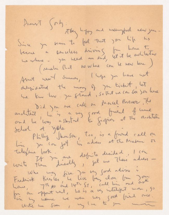 Architecture, as Matta suggests, comes as a temporary “end,” an intermediate station from here to “no where” that can be “here” and “now.” Matta transforms a term that stands for the lack of orientation into a two-way street or roundabout via a gesture of Joycean word-splitting. Yet by the same wordplay, “nowhere” becomes coterminous with a career path in architecture, which Matta encourages his son to follow. The entire letter reads as a roadmap for a trip to “nowhere,” wrapped as a father’s gift and sent in response to one of Gordon’s own New Year’s resolutions.