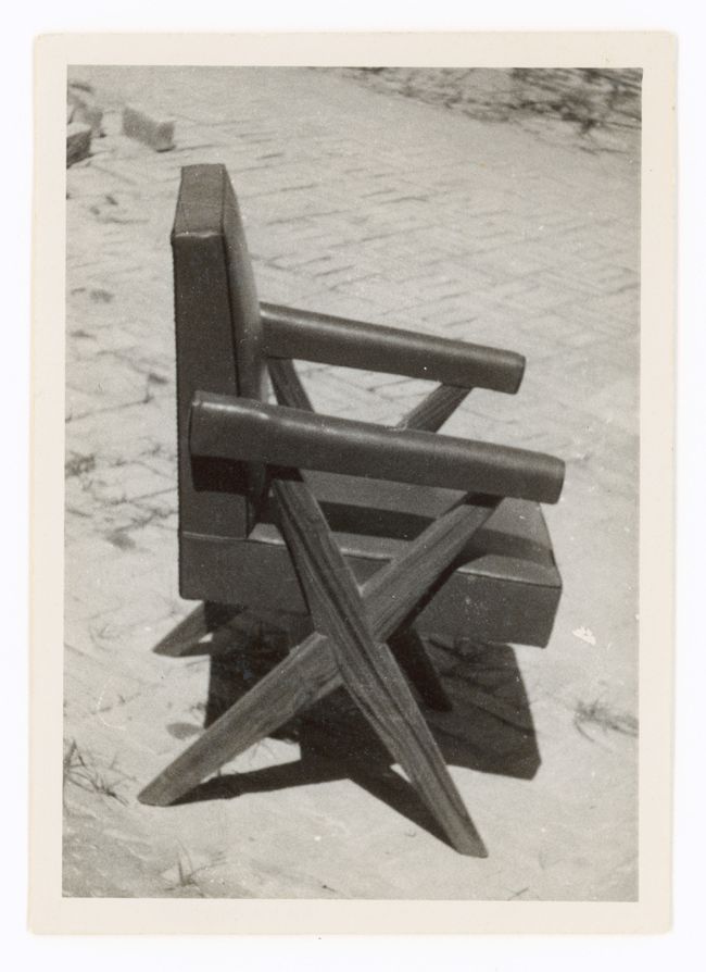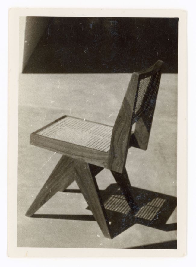 Unknown photographer, view of a chair designed by Pierre Jeanneret, Chandigarh, India, 1958-1979. Gelatin silver print, 8.5 × 5.7 cm. ARCH402419, Pierre Jeanneret fonds, CCA Collection. Gift of Jacqueline Jeanneret.