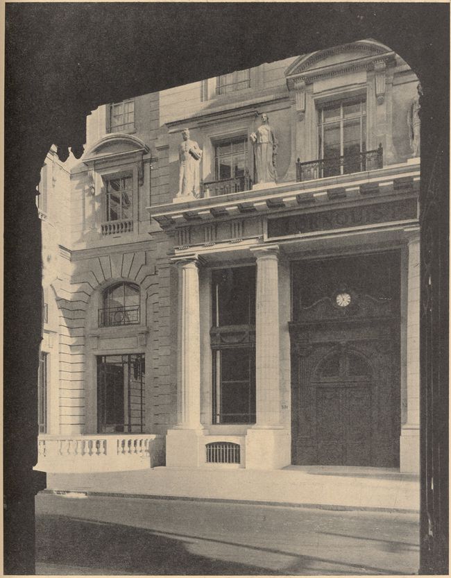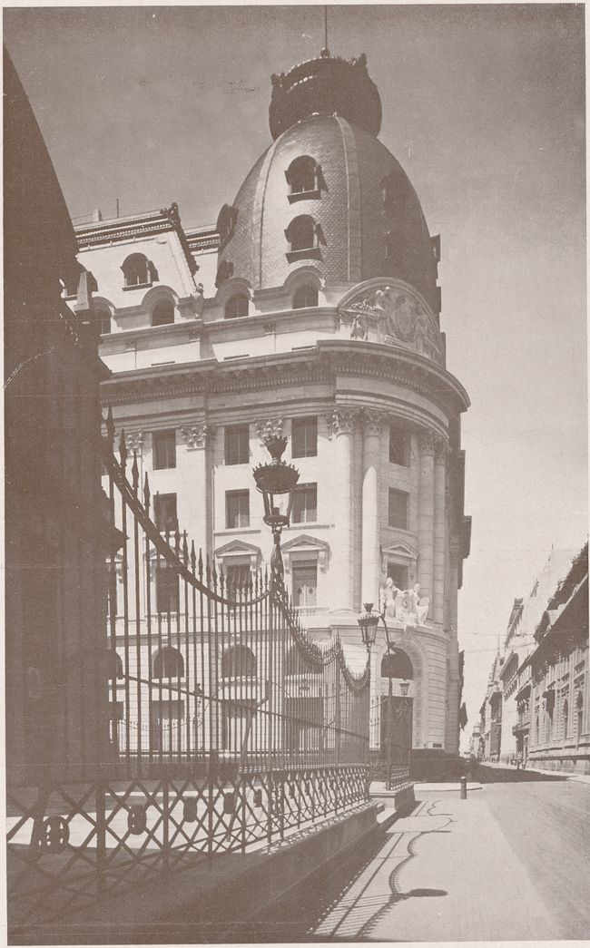 The central volume of the Banco Tornquist building is removed from the municipal line creating a perspective that highlights the monumentality of its neoclassical facade decorated in Paris stone with four sculptures by the Italian-Argentine artist Troiano Troiani.