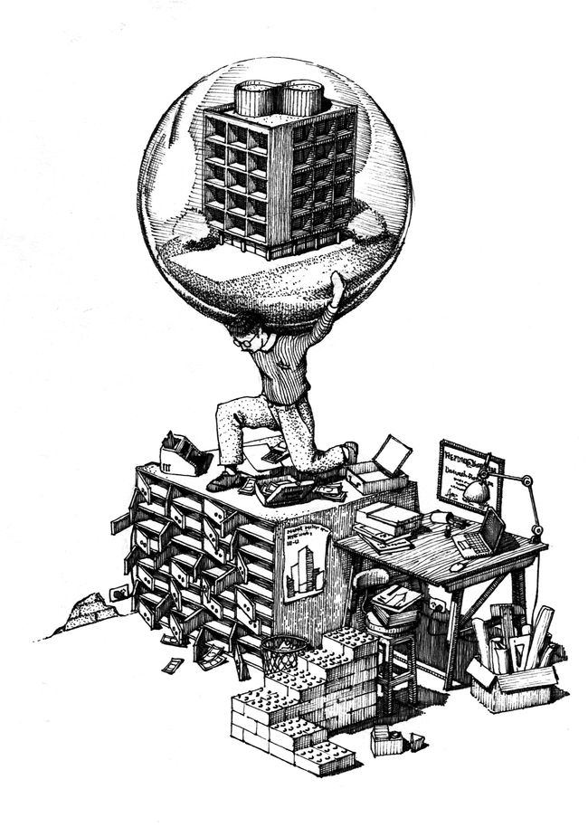 The weight he feels at that moment, then, is not related to the banknotes per se, but to the actual load of his own and collective expectations of developing a building; the effort and time invested by all those behind this endeavour. He does not know it yet, but one day he will remember this moment with tenderness and a certain shame—it is the day that the trance of his childhood and of the academy was permanently erased from his conscience, replaced with the weight of an entire building.