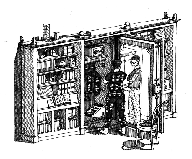 El edificio de la cueva es uno de los tantos de ese elenco interminable de edificios de oficinas del centro de la ciudad construidos entre los sesenta y los setenta. Una caja de zapatos que contiene decenas y hasta centenas de cajas de zapatos más chicas con poca o nula entrada de luz natural, pasillos revestidos de granito o enchapados en madera, y ciertas reminiscencias al cine clase B. Casi concibiendo un género local de exploitation arquitectónico, estos edificios, desde inicios de la década del setenta, se han concedido la modestia de acumular muchos de los misterios de Buenos Aires: dealers, revendedores, chapuceros, terapistas alternativos, clubes de conspiración, editoriales piratas, coleccionistas de juguetes antiguos, prostíbulos, estudios de abogados; y ciertamente cuevas, cientos de ellas, factótums de la maquinaria secreta que sostiene en voz baja el funcionamiento de la ciudad formal.