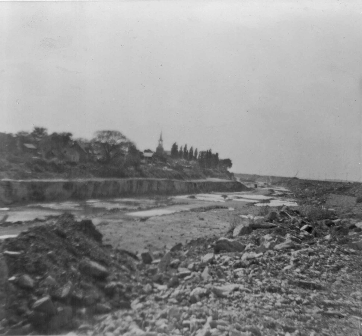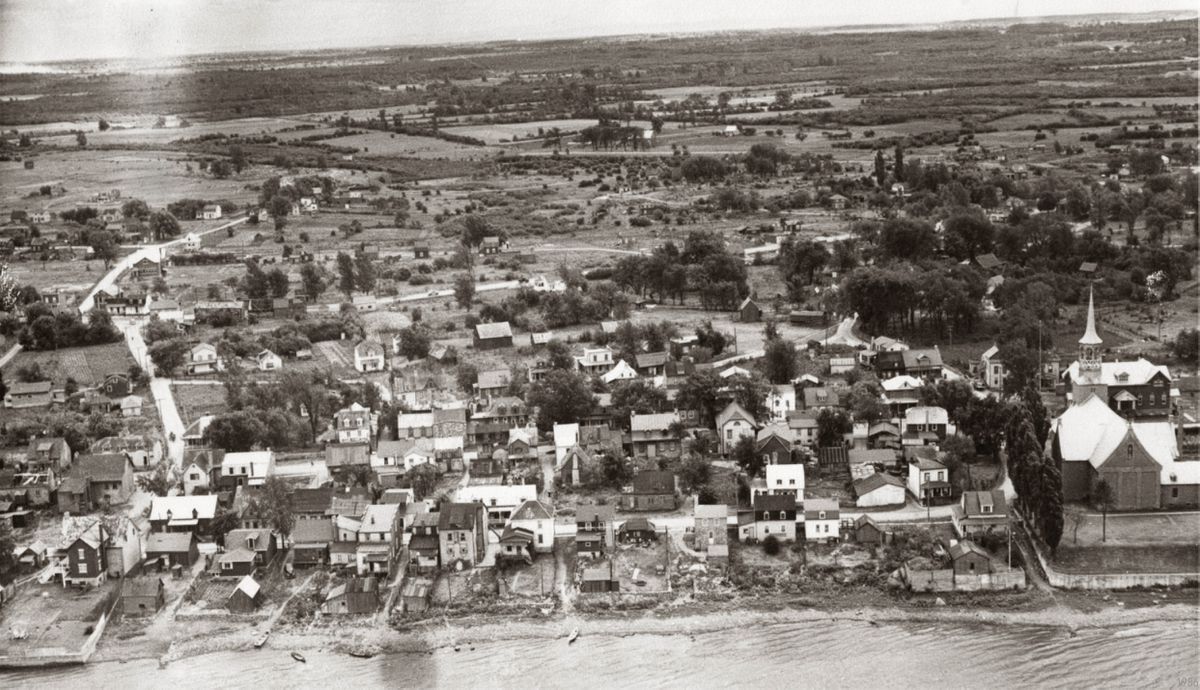 In 1954, the decades-long dream to build a Seaway became a reality. In May, President Eisenhower signed the Wiley-Dondero bill.4 The Canadian government followed, passing the St. Lawrence Seaway Authority Act in June. The project required hundreds of engineering firms and independent contractors, who were hired from around the world. It also required the manipulation of the river at a scale never previously attempted. Until the early 1950s, most plans had called for the seaway channel near Montréal to run along the undeveloped land of the city’s North Shore.5 Right before the construction of the seaway, that plan was changed, and a new channel was approved by the Saint Lawrence Seaway Authority (SLSA). This new channel required the expropriation of 1 262 acres of land from Kahnwà:ke, including a large portion of the community’s village and the waterfront. The move from the North Shore to the South was justified by the St. Lawrence Seaway Authority by claiming that the land to the North would be needed for future development and could be valuable to industry in years to come. This shift in construction prioritized potential future profit over the already extent buildings and community in Kahnawà:ke Village and reserve.