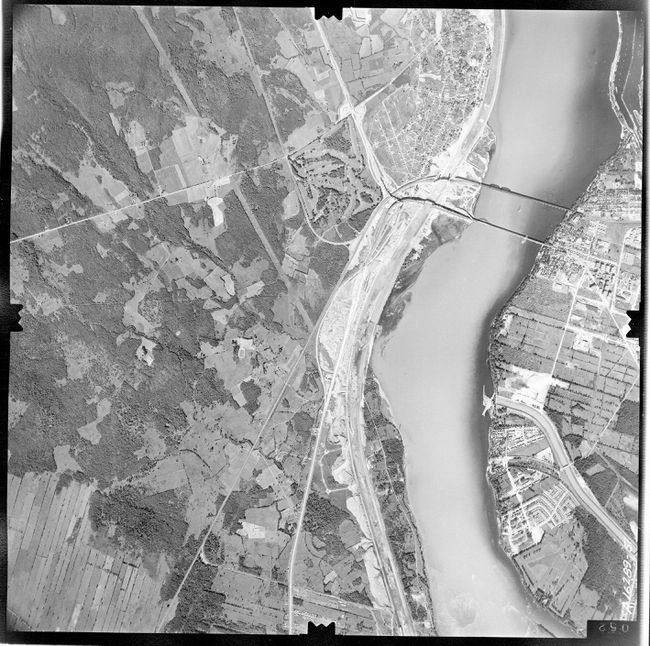 The concept of a middleground as a contested space appropriated by settler spatial practitioners requires a critical engagement with what the archive may initially seem to valorize as a feat of design ingenuity. One such site is located just a fifteen-minute drive across the Mercier Bridge from Tiohtià:ke (Montréal). At this place in 1955, a triumph of engineering was achieved while constructing the Saint Lawrence Seaway: the largest bridge raising effort ever attempted to that date.1 It is also the former waterfront of the community of Kahnwà:ke, whose land was forcibly taken to construct one of the Seaway’s many new navigation channels. Kahnawà:ke, which means on the rapids in Kanien’kéha, is a Mohawk community and village that has existed across the river from Montreal since 1680.