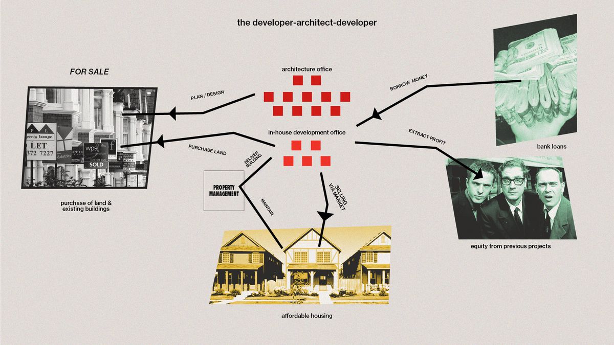 A successful, lecture-circuit architect almost never talks about their relationship with money; it is implied that their ideas are so good that their finances just take care of themselves. The architect-developer, however, must defend their architectural virtue because their other values are much clearer. (Alternatively, they can keep their hyphenation a secret, and many do.) You could say that the architect-developer loses prestige because they embody a contradiction the unhyphenated architect pretends not to face. Or, optimistically and in reverse, since the unhyphenated architect claims to produce values beyond profit, a greater presence of architects in development could bring a shift in values.