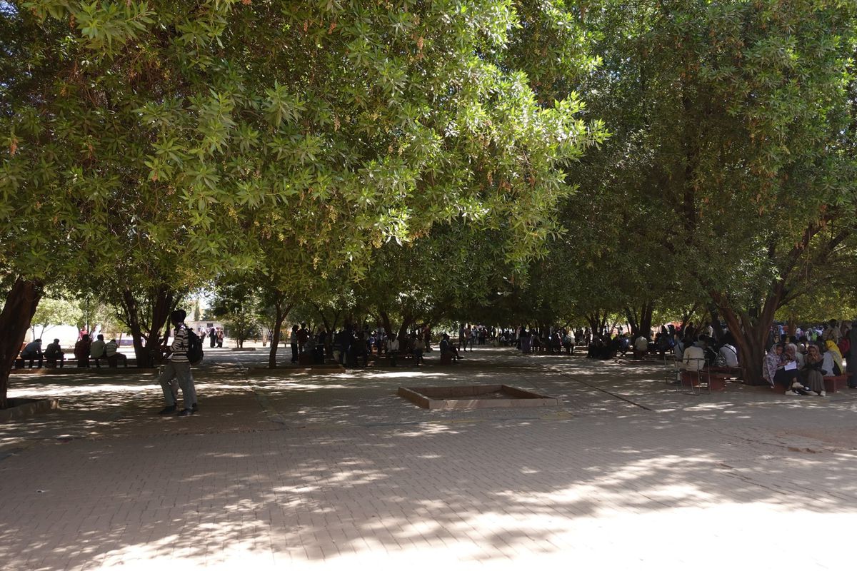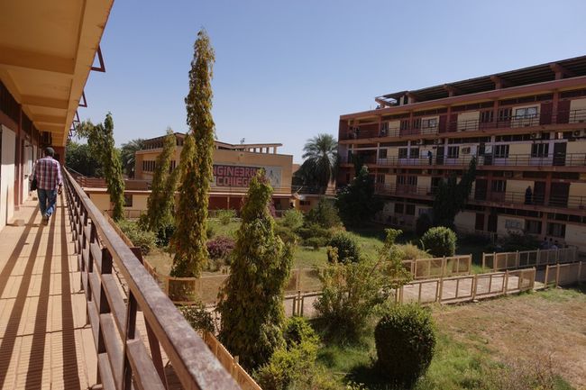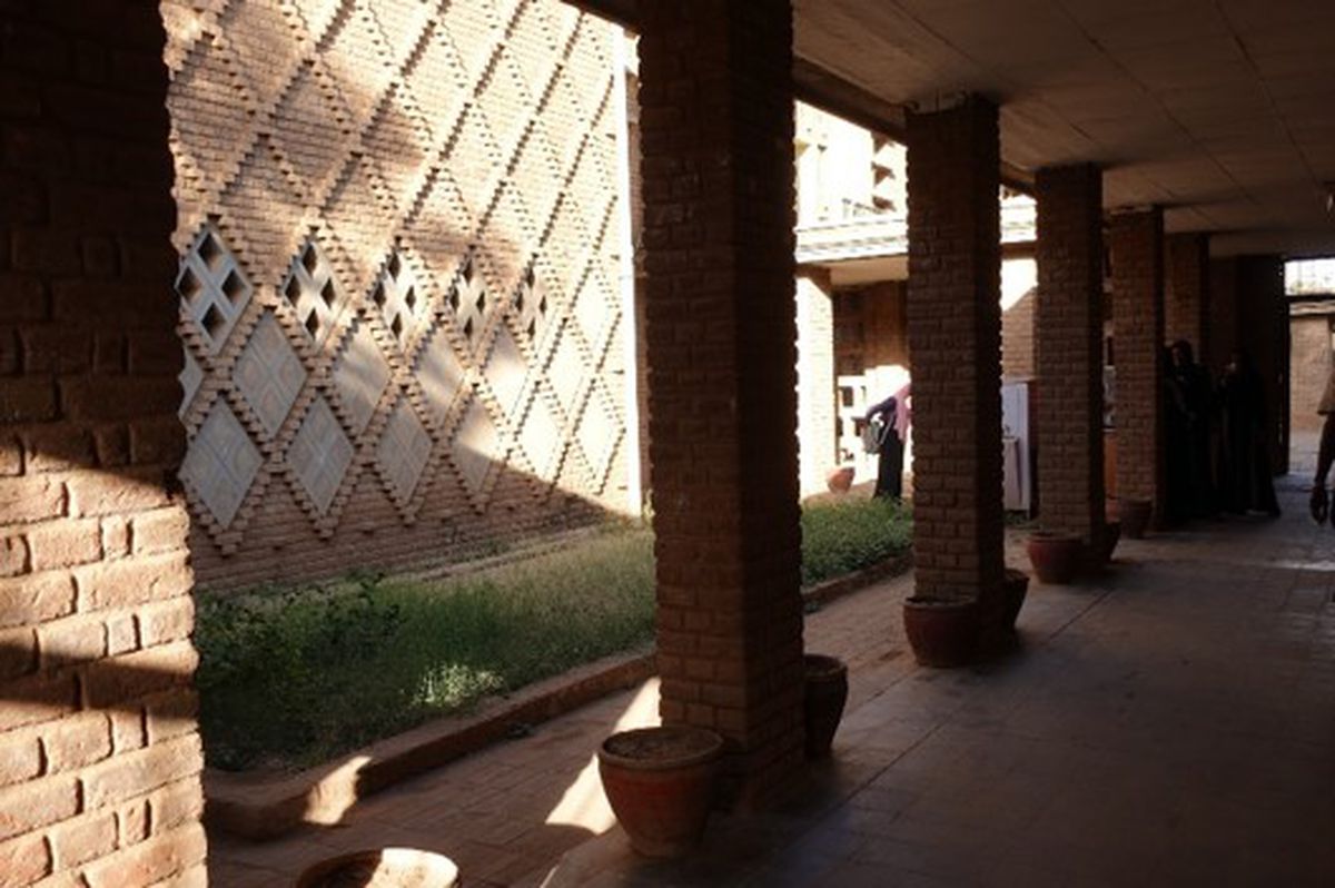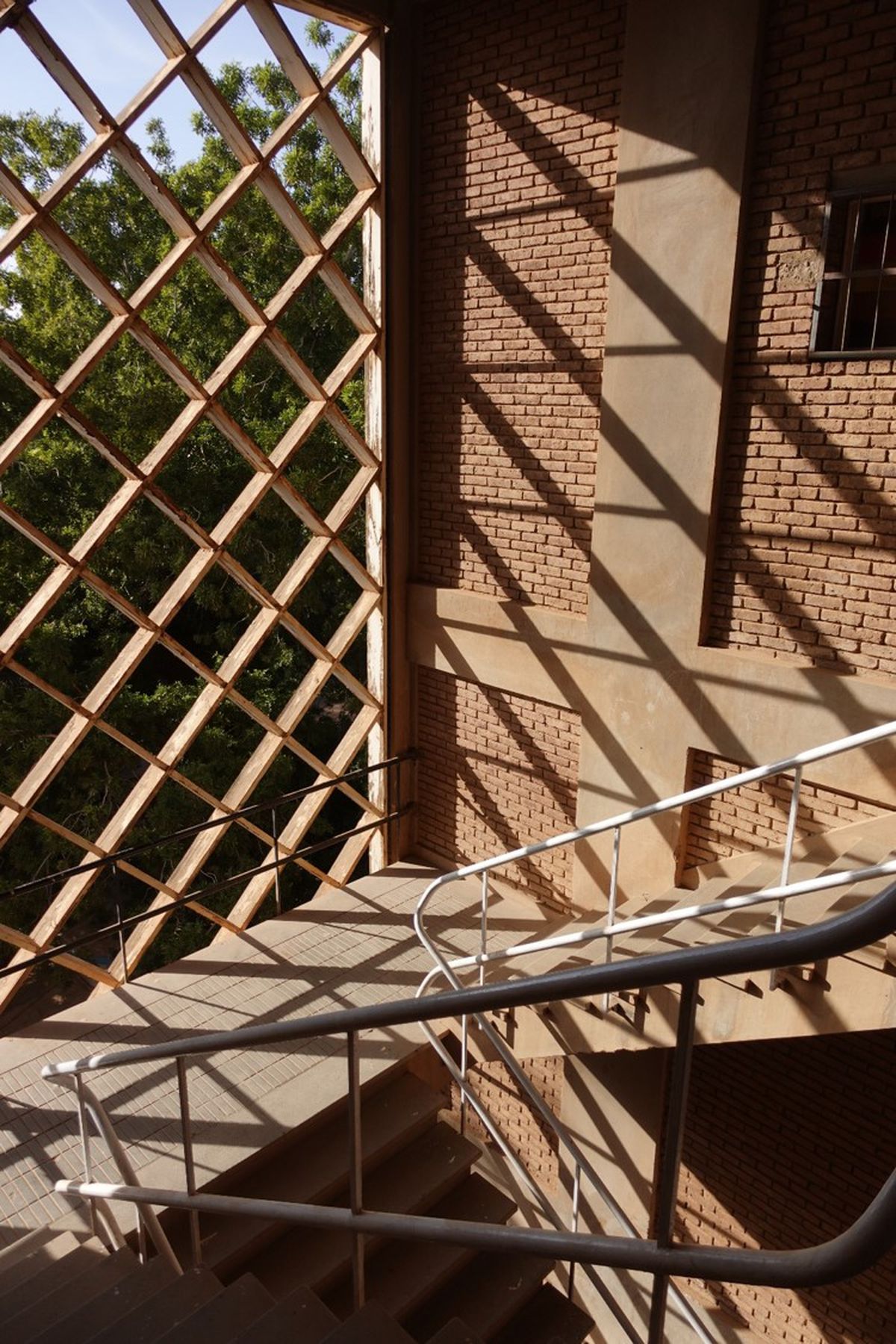 These gestures were carried to public buildings as well. In the Chemistry Lab of the Faculty of Science in the University of Khartoum, Petermuller lifted the entire multi-story building from the ground in order to create a meeting place for students. Today, the area functions as a shaded public space as well as a passageway that links parts of the campus. The memorable verandahs of this building, with tilted wooden grid latticework, protect the walls from the sun and regulate the linear and vertical circulation spaces with impressive shadows on surfaces. The verandah-in-the-air functioning both as a sun-shading device and a socializing circulation space, as well as the most identifying façade element became a repeated pattern during this time. In the Faculty of Architecture, designed in four phases by different faculty members, a protected outdoor circulation network combines programmatic spaces and different levels by also knitting the separate buildings together.