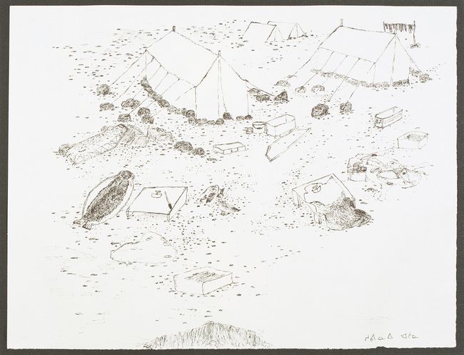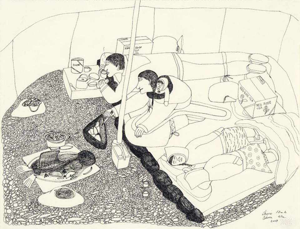 - When I started looking through our collection, I was surprised that we didn’t have a whole lot that related to architecture or even structures. I know the artwork exists: it’s out there. Contemporary Inuit artists have been making precise drawings of typical Northern buildings, and they’re really beautiful. There’s one piece by Itee Pootoogook of an abandoned, broken-down building, and the way it’s drawn is just visually striking. In the collection, there were a lot of pieces that related more to family activities within the home, so I included a couple of those—a nice Shuvinai Ashoona piece of a mother and her children inside a tent, one of them was. There’s something about these works that transports you into these spaces, something that makes you feel comfortable. They’re relatable, and that’s what I really love about them.