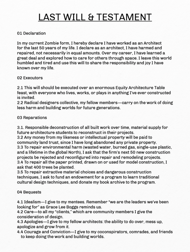 It is not easy to accept that one’s profession causes harm. We like to think of ourselves as good people—and most of us are. But we live in systems that we did not choose, feel unable to change, or may not even perceive. When we harm other living things, or the world sustaining our bodies, cultures, or even ourselves as architects, it is most often because it seems we do not have any choice.