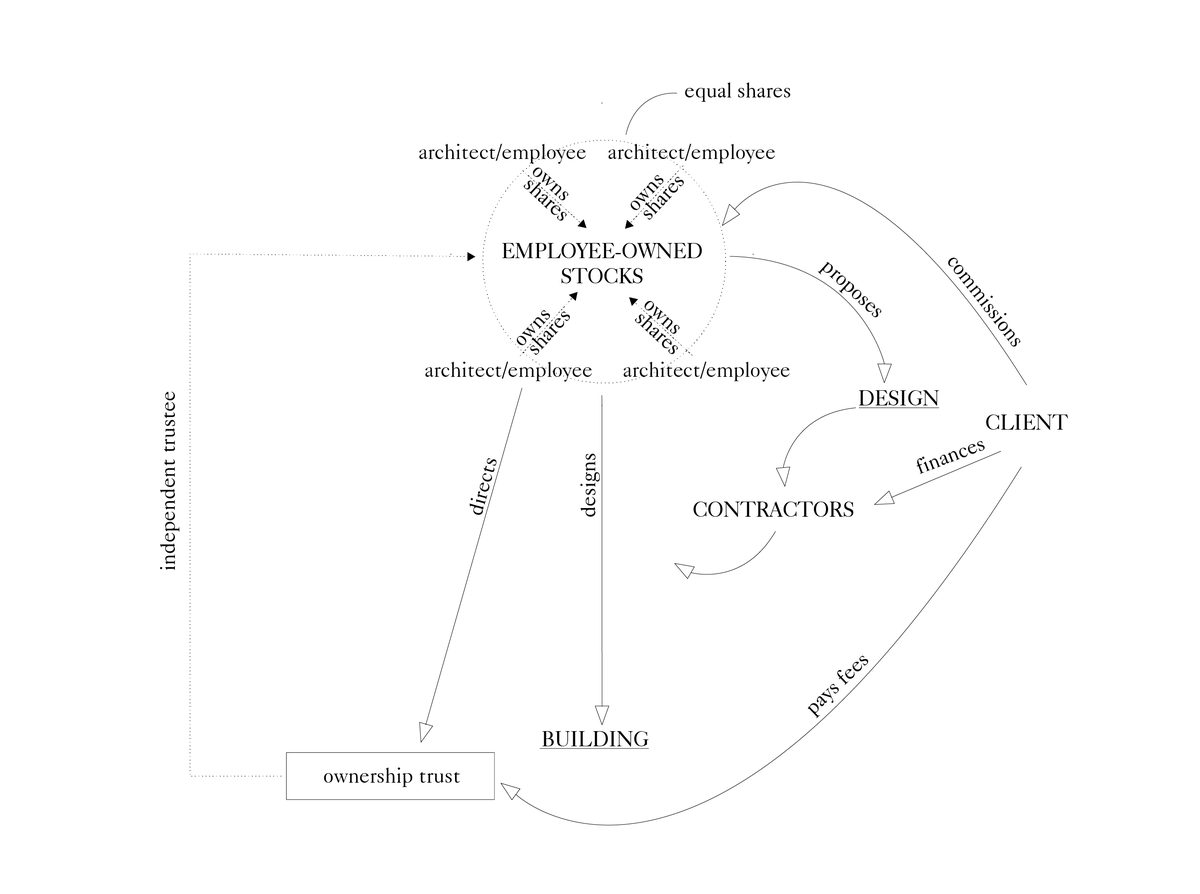The union and I met for months and explored different restructurings, which ultimately resulted in the Flat Power Model. We would never have been able to embrace the “little harm, big risk” model in our work before construction workers, architects, and administrators were all at the same level in the firm. Additionally, freeing a more speculative wing of the office into a 501(c)(12) Critical Practice model allowed us to invest directly in policy whispering and cultural production.
