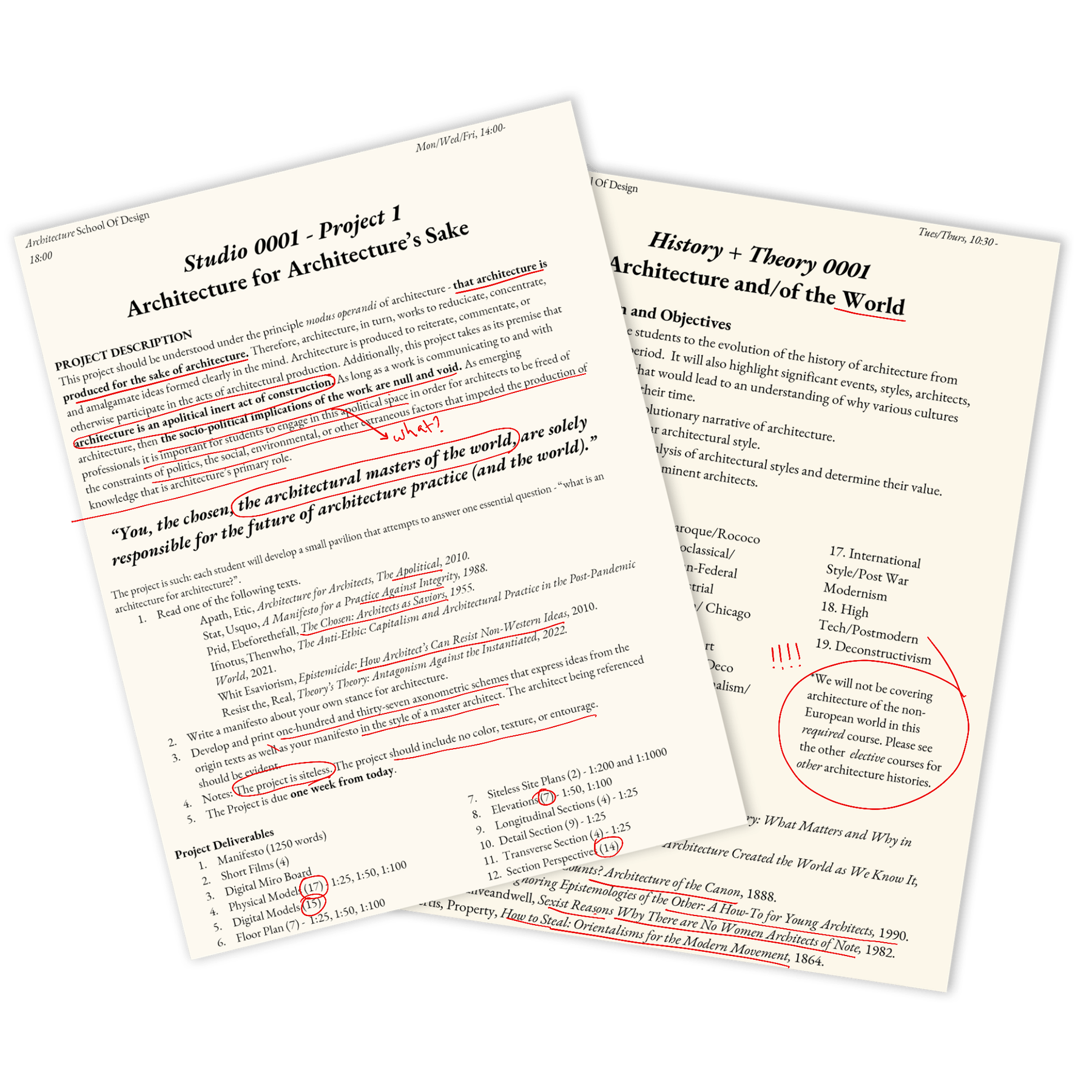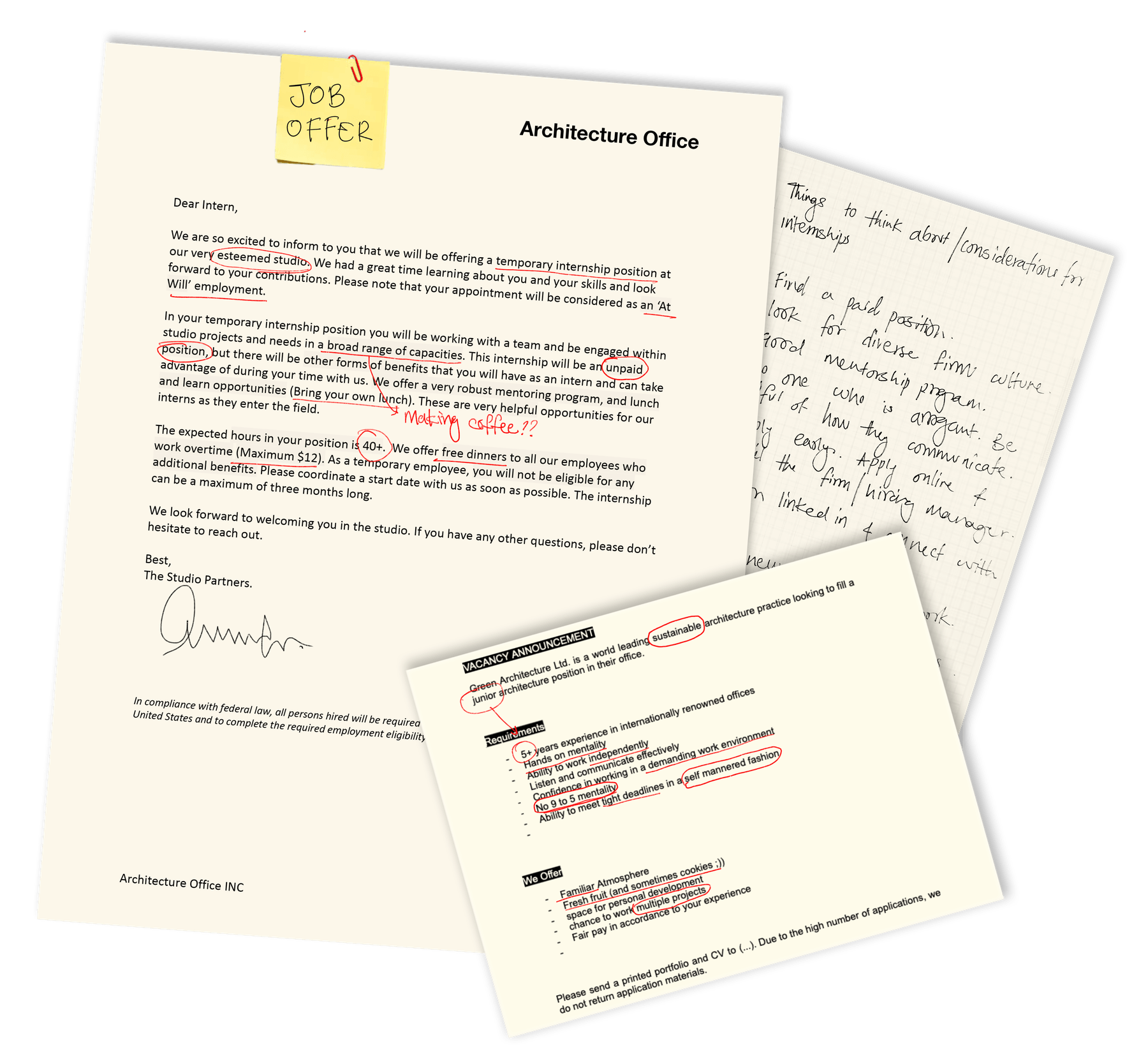 Following a possible career path of an architect is one way to explore this world of hurt. This journey starts with the initial shocks of encountering architectural culture, and moves into the grind of first jobs, and then the search for other ways of being an architect—reclaiming agency and being able to choose what kinds of harm you will do. In mid- and late-career positions, for those people whose determination, creativity, or privilege allows them to remain in practice, comes greater power and both new opportunities to create alternative practices, as well as new temptations of complacency and rewards for complicity.