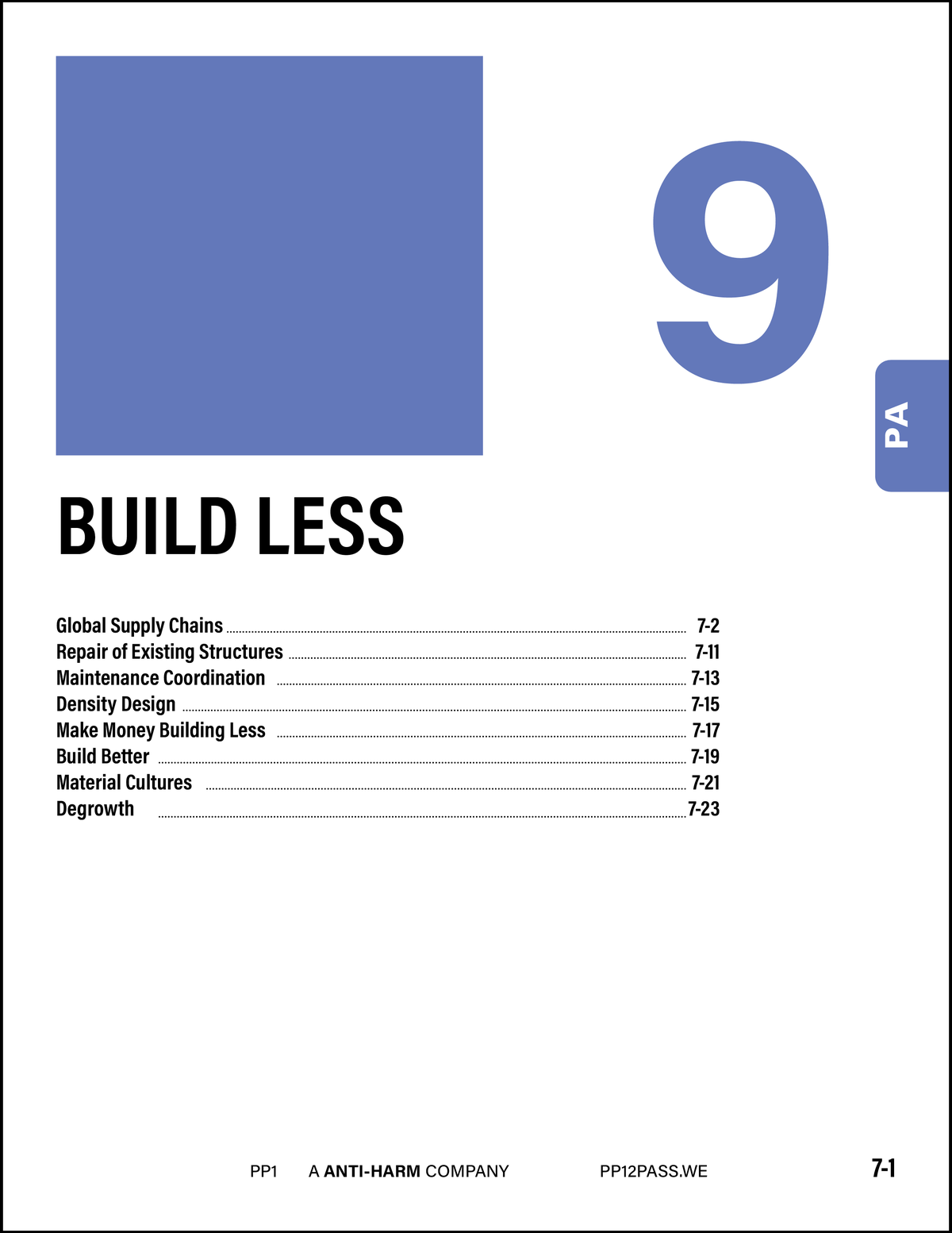 I remember when we joined the Alliance for Equitable Licensure and I gave up my license—refusing to complete projects unless licensure fees and testing requirements were made more equitable—it really hurt. We lost seventeen projects that year because of it and nearly went bankrupt. When Architects for Resistance to Climate Harm took on the challenge of examination reform during the license strike, just building consensus about the “Build Less” chapter took six months of debate over which sub-topics to include, as well as a team of nine researchers working for half a year to study the reality of global supply chains and extraction models.