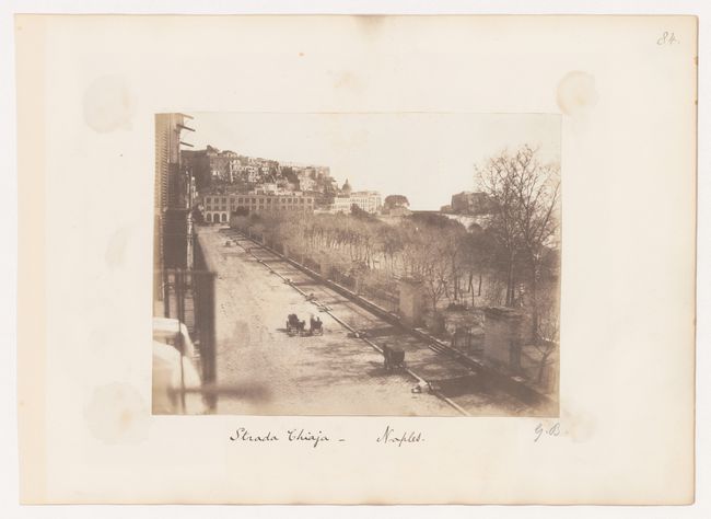 A scene captured by British photographer George Wilson Bridges in 1846 frames a slice of time out of the densely intertwined social, architectural, and environmental histories of the Villa Comunale park, which stretches along the Chiaia coast of Naples.1 The photograph stages a partitioned landscape in a narrow zone between the metropolis and the Mediterranean, demonstrating a set of meticulous linear demarcations separating residences, streets, plants, and water. Originally known as the “Villa Reale,” the park was begun in the 1780s at the Bourbon king’s behest as a royal promenade under the direction of architect Carlo Vanvitelli. Buildings, boulevards, curbstones, walkways, cast-iron fences, and juvenile roadside trees unswervingly align, as if cutting the borderland into even strips of space.