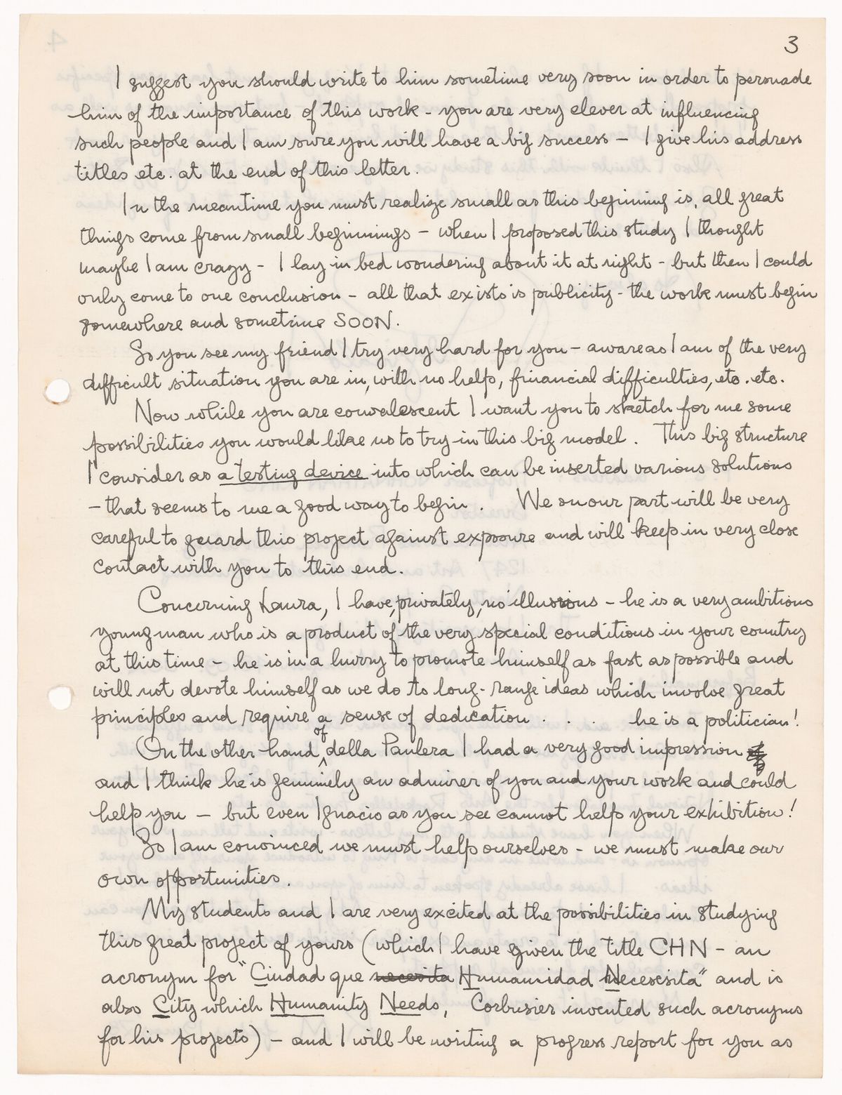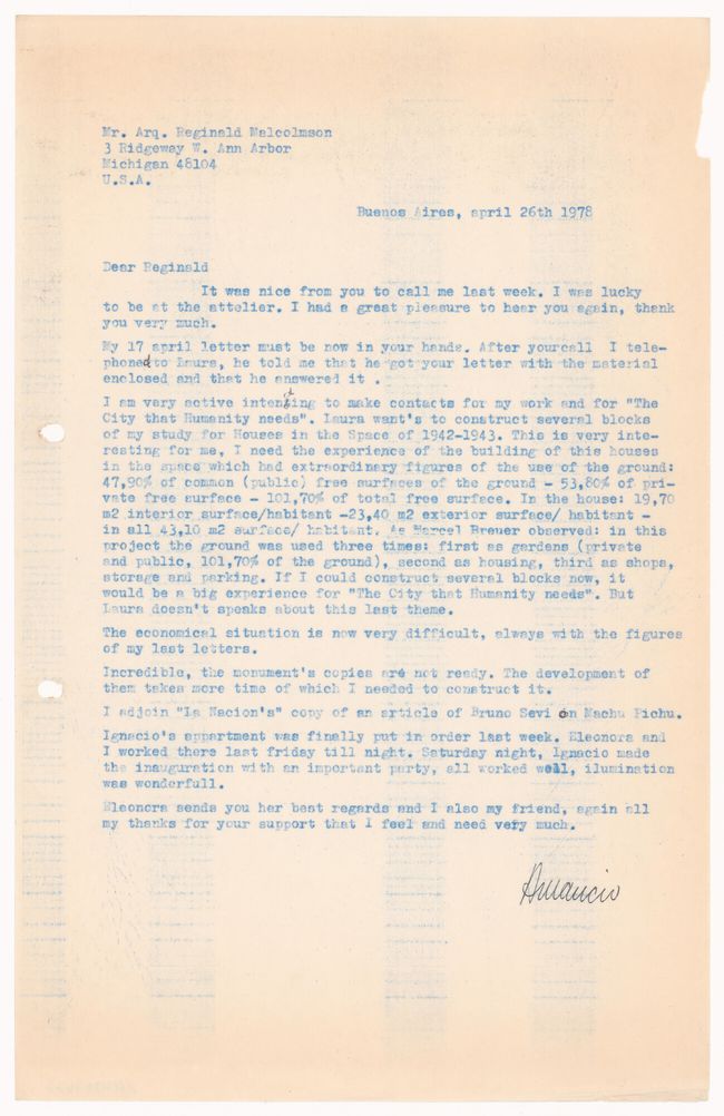 Lo que las cartas nos brindan en su conjunto es la elaboración de un pensamiento teórico de un arquitecto que no escribía en los medios tradicionales, no escribía artículos, no era un crítico… y sin embargo, elabora un corpus de ideas teóricas tan denso y tan interesante. En la correspondencia que guarda Amancio (con su impresionante autoconsciencia de que todo lo que produce tiene valor, y por lo tanto lo guarda), lo que queda, lo que tenemos en el archivo, son los borradores: a veces cartas escritas a mano que después Delfina, o su hija, o alguien en la oficina tipeaba, muchas veces con alguna anotación de corrección, con algún agregado, que contrastan con las cartas de respuesta. La densidad de esas permite reconstruir unos diálogos que, en muchísimos casos, dejan de ser un contacto profesional tradicional y adquieren un valor emotivo muy profundo en cuanto a las ideas.