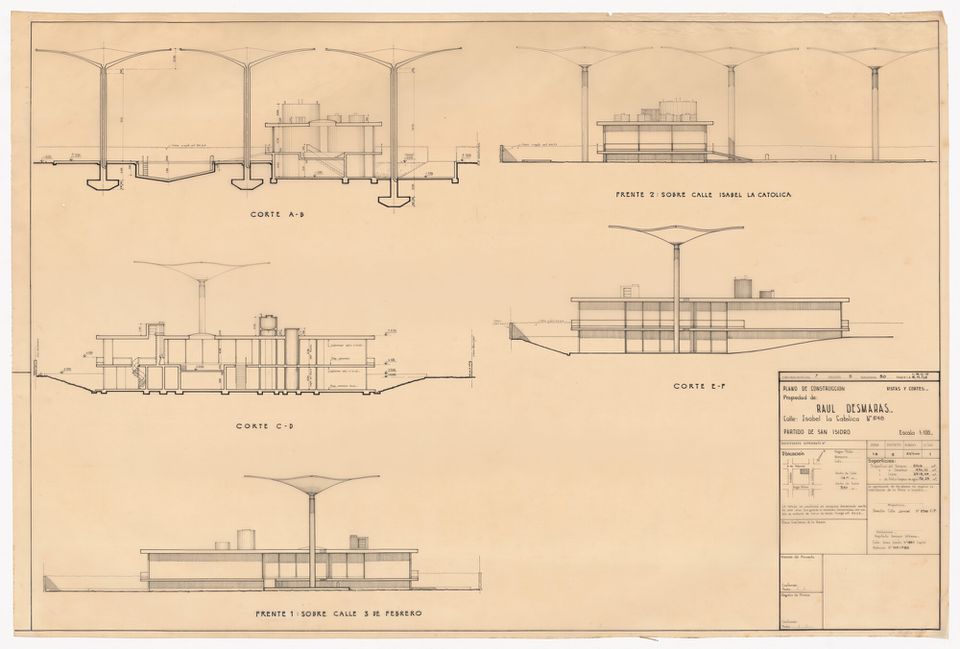 A selection of drawings of the Casa Desmarás by Amancio Williams
