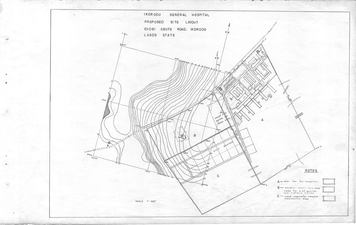 Michael Olutusen Onafowokan, Isometric drawing of the Ikorodu General Hospital Nigeria, 1972. CC BY-SA 4.0