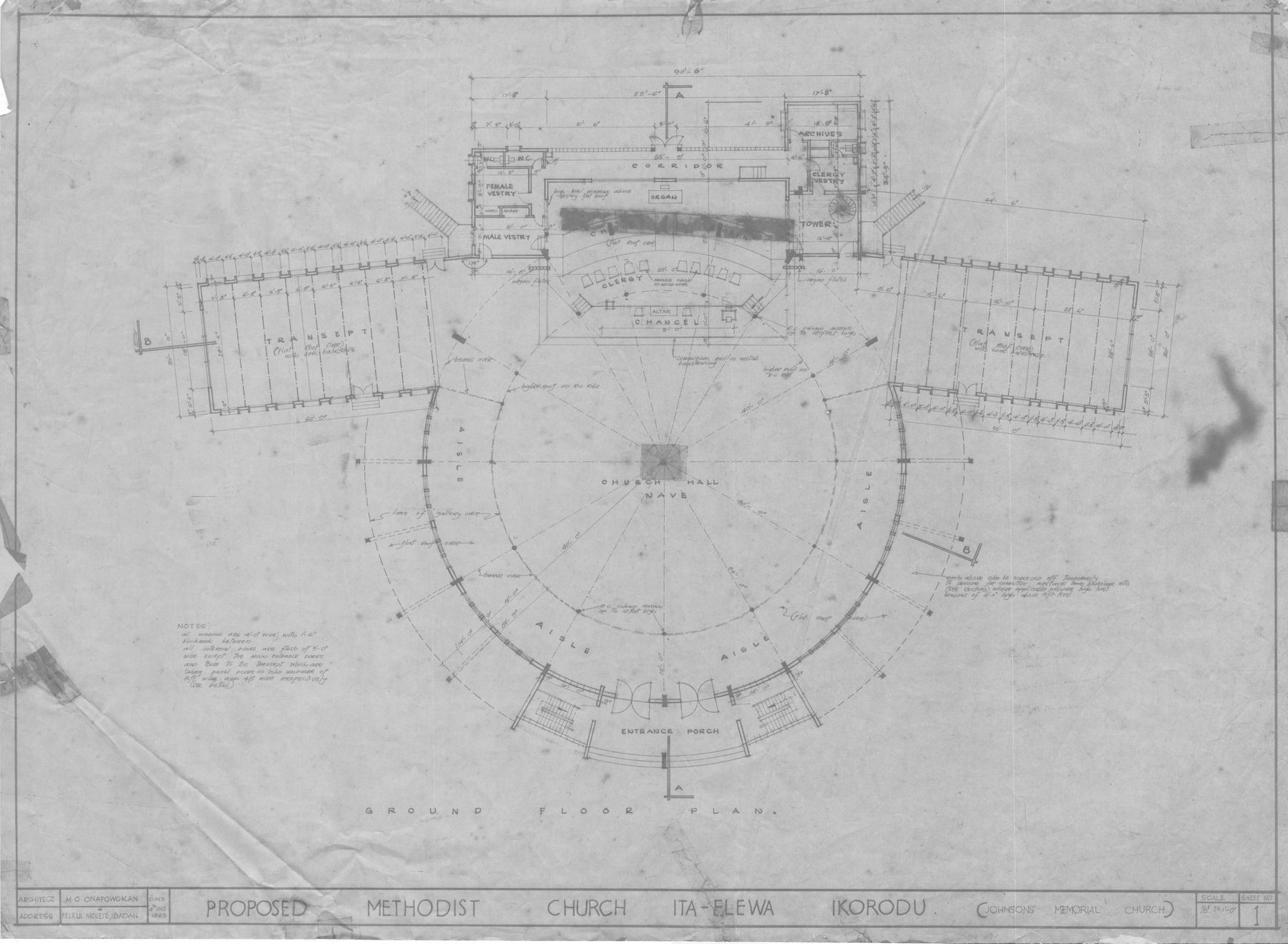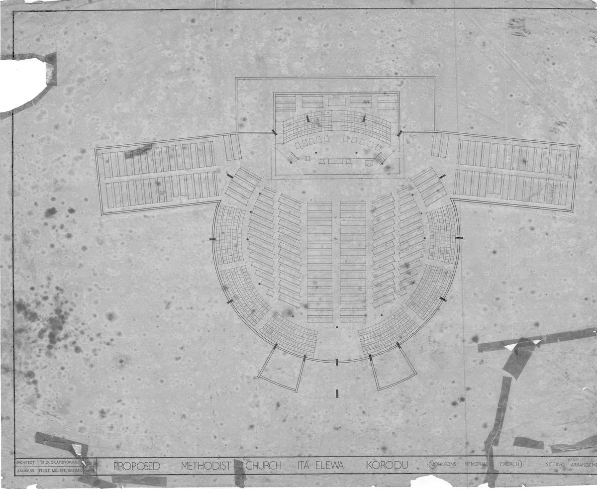 Michael Olutusen Onafowokan, Ground floor plan of the Patriarch Bolaji Methodist church at Ita-Elewa in Ikorodu, Lagos State, Nigeria, 1964. CC BY-SA 4.0
