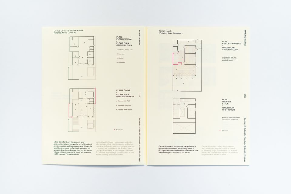 Making Mamak workshop blueprint showing plans of Little Giraffe Story House and Papan Haus art collectives, produced by Constant/Variable and photographed by Ang Xia Li