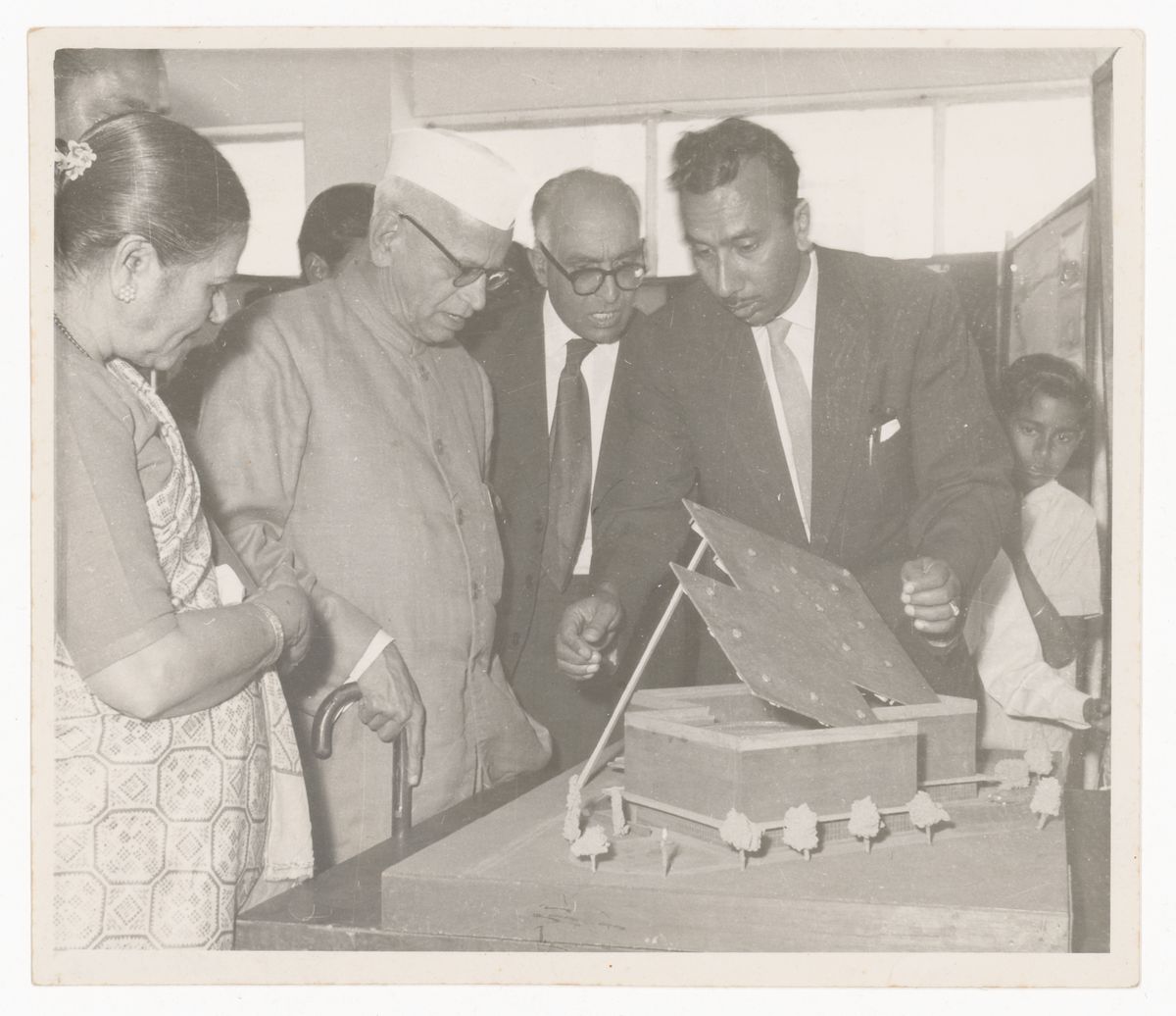 Prakash, who designed some sixty buildings throughout north India during his life-time, is a fascinating and underexamined figure within the story of twentieth-century modernism. Growing up in the colonial era, he was in his early twenties when India gained Independence from British rule. He left the subcontinent on 8 August 1947, one week before Independence was achieved, to pursue his studies in art and architecture in London and Glasgow, and would remain in Britain for the next five years. In 1952, Prakash received the opportunity of a lifetime: to join the audaciously ambitious project spear-headed by India’s first Prime Minister, Jawaharlal Nehru, to build a new capital city for Punjab. The region was still reeling from the bloody violence and refugee crisis of Partition a few years earlier, and had lost its previous capital, Lahore, to Pakistan in the division of land that resulted in two new nation-states. Nehru wanted a modern city for Independent India, a future-looking landscape, as he stated, “unfettered by the traditions of the past,” and he famously commissioned Le Corbusier in 1951 to serve as chief architectural advisor and author of its master plan.1 Nehru further conceived of the project as a laboratory for education and professional development, and envisioned that the senior architects from Europe would help to train their Indian counterparts. It was a prescient vision. As the “junior-most of the junior architects” from India recruited for the team, Prakash went on to work closely with Le Corbusier, Pierre Jeanneret, Maxwell Fry, Jane Drew and a large staff of Indians for the next decade, passionately absorbing the principles of modernist aesthetics that would meaningfully determine the course of his life.2