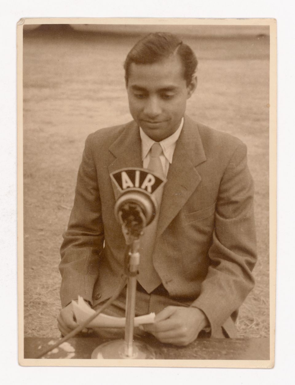 A striking photograph from the 1950s in the Aditya Prakash fonds conveys the sense of a young man on a mission. Immaculately dressed in suit and tie, and fresh from his architecture studies in London, Prakash is poised in front of a microphone bearing the insignia “AIR.” This was (and still is) the abbreviation for All India Radio, the state-owned public radio broadcasting service established in the Indian subcontinent in 1936. Behind him in the photographic frame is a vast arid field stretching endlessly into the horizon. As part of the team of junior Indian architects invited to participate in building the new capital city of Chandigarh, Prakash was tasked with informing the public through a live radio broadcast about the project they had embarked upon in this remote, rural setting in the northern state of Punjab.