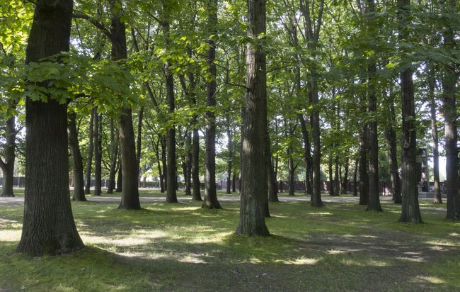 A park is also a memorial ground, recalling the ancient idea of a sacred grove as a place of ritual and collective memory. Rows of trees make a monumental colonnade along alleys and stand in contrast to the scattered trees that make a wild forest. The sheer scale of war atrocities required new forms of commemoration.