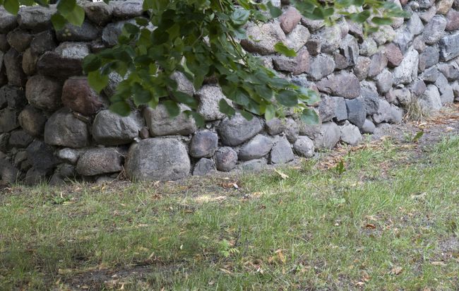 Scholtz used readily available material in her designs. Dry-stacked masonry walls were made of local stone. They were bound with mortar or plain soil, allowing moss and other plant matter to grow between the joints and alter the stones’ colour.