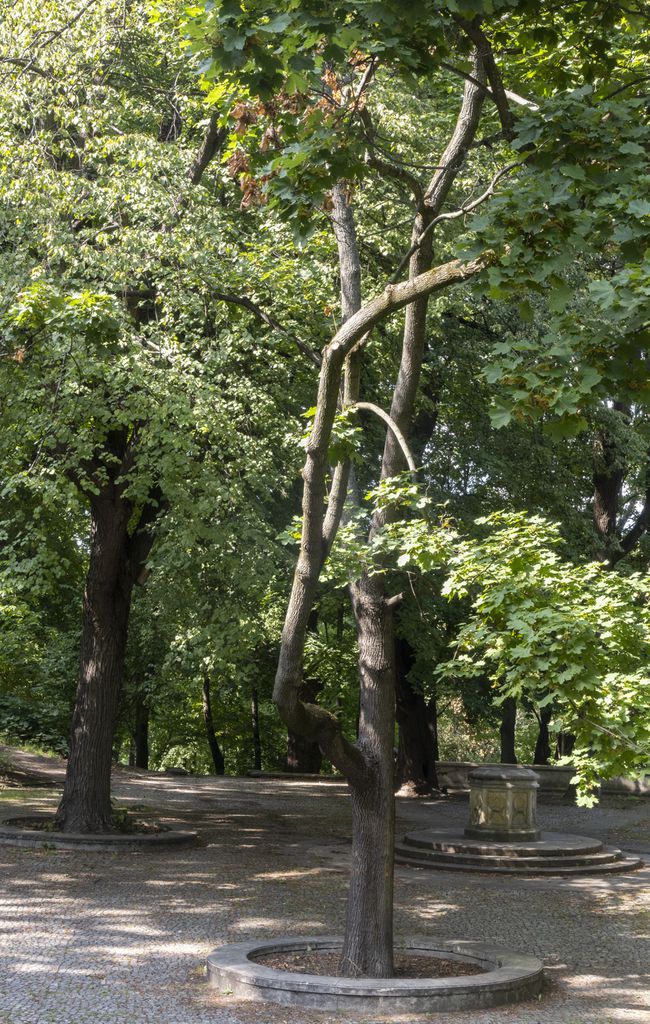 Trees play a central role in Scholtz’ projects. Their spatial arrangement defines the basis of her compositions. Oak, ash and maple, hornbeam and lime trees, chestnut and cedar, beech, poplar and linden, apple and pear trees. Old trees were often preserved, even when damaged and sick, as she appreciated their age and the picturesque appeal they gave to her landscapes. Many of them survive to this day.