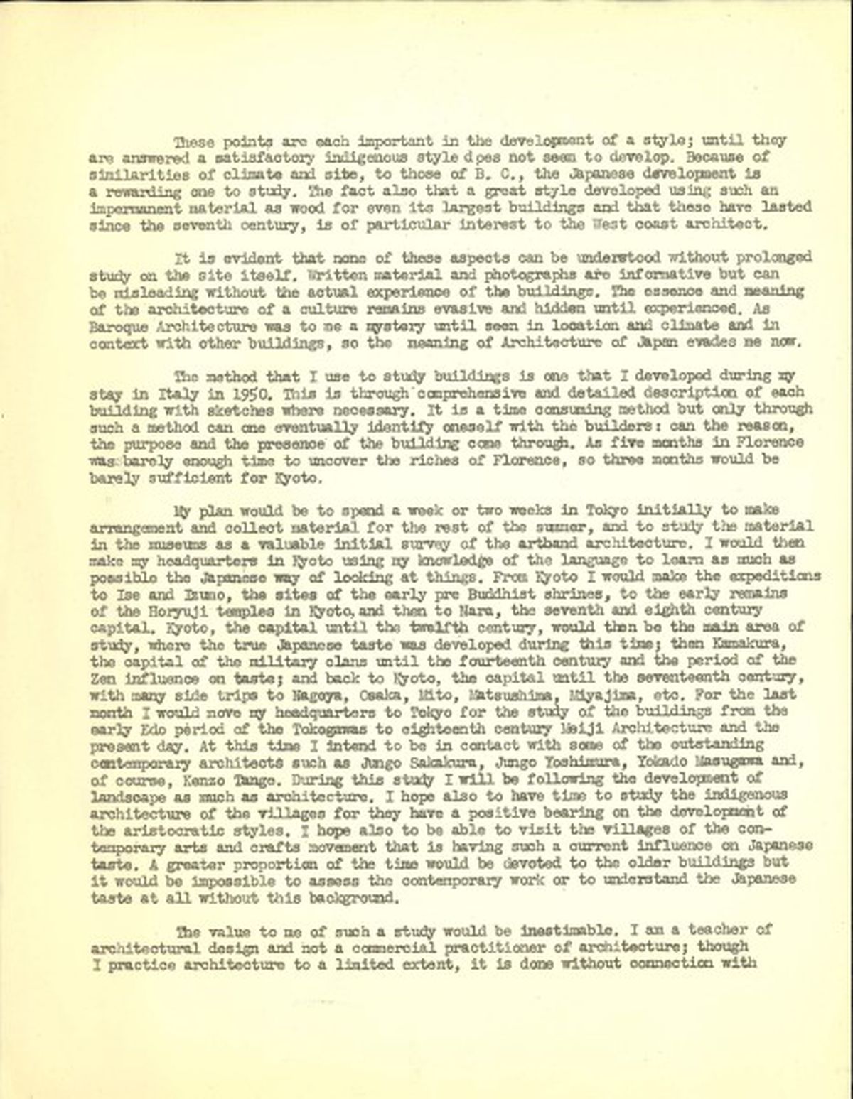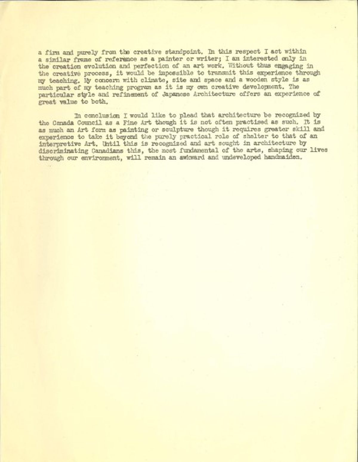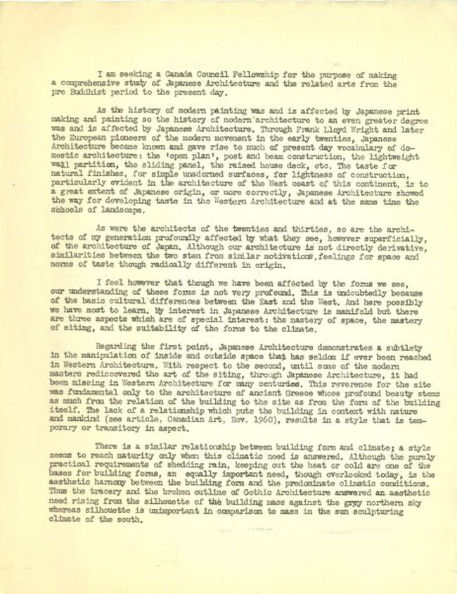 Arthur Erickson, Letter of intention, application for the Senior Arts Fellowship of the Canada Council for the Arts, 10 November 1960, 1. ↩
