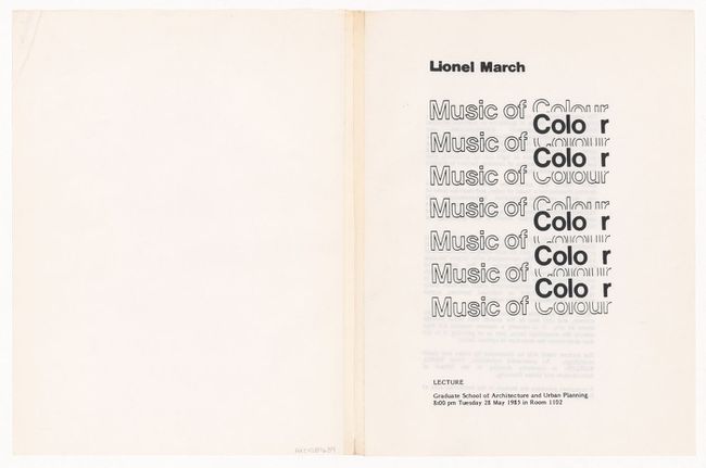Music of Color lecture, Royal College of Art, London, 1984-1985, box 208-2022-025, folder 208-025-002, Lionel March fonds, CCA. Gift of the Lionel March estate. ↩