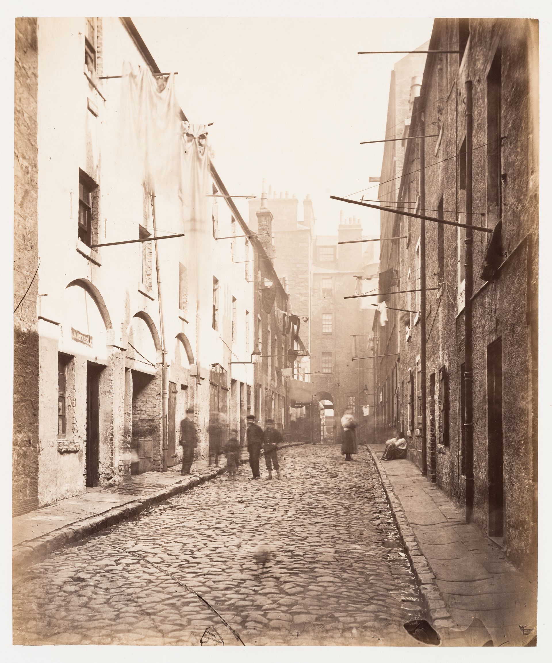 In 1866, the miserable living conditions of Glaswegians crowded together in unsanitary housing pushed the Glasgow city council to adopt the Glasgow City Improvements Act. This legislation, at the forefront of one of the first public health reform movements, aimed to tear down the slums in the poorest neighbourhoods of the old city to allow for new urban development. The Glasgow City Improvement Trust gave the photographer Thomas Annan the task of documenting the condemned buildings and narrow alleyways of the slums before they were dismantled. The thirty-one albumen silver prints made by Annan between 1868 and 1871 were collected in an album.