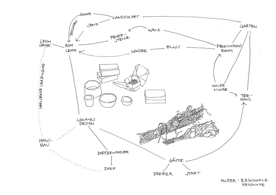 Wenngleich dieses kuratorische Projekt auf meinen Erfahrungen im ländlichen Raum in Deutschland und Japan beruht, wird es von gegenwärtigen, weltweiten Entwicklungen ländlicher Gegenden erweitert. Es nähert sich diesen Bewegungen entlang exemplarischer Muster in drei Themenfeldern: Handwerk, Kulinarik und Material. Muster aus unterschiedlichen Zusammenhängen zu entwickeln ermöglicht es, weitergreifende Aussagen zu formulieren: Ein Muster integriert bestimmte Beobachtungen in seine Struktur und lässt sich so zu anderen Mustern ins Verhältnis setzen. Durch diesen Prozess können Muster in unterschiedlichen Kontexten, Zeiten und Dimensionen angewandt werden. Sie werden zu einem hilfreichen Instrument, um unsere gegenwärtigen Lebensbedingungen zu lesen, historische Vorläufer zu verstehen und Zukunftsmodelle zu gestalten. Mein Vorschlag ist es, mit den folgenden Beobachtungen aus dem ländlichen Raum zu beginnen: