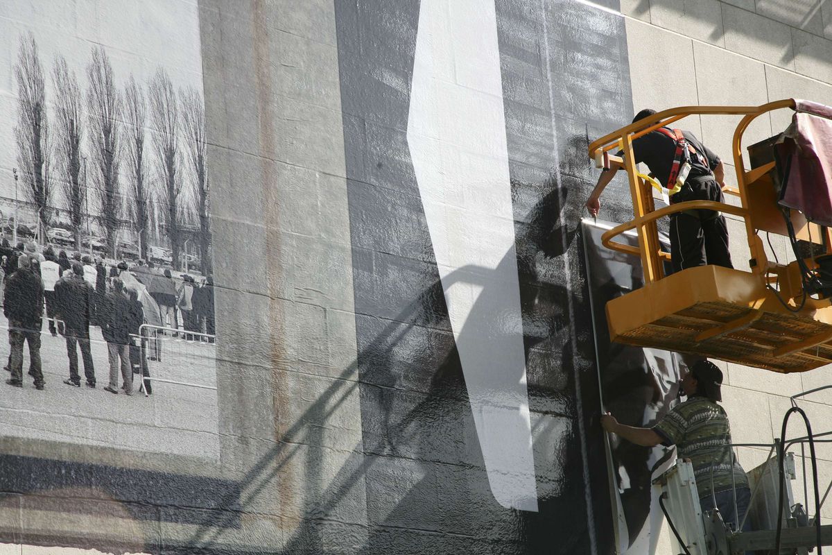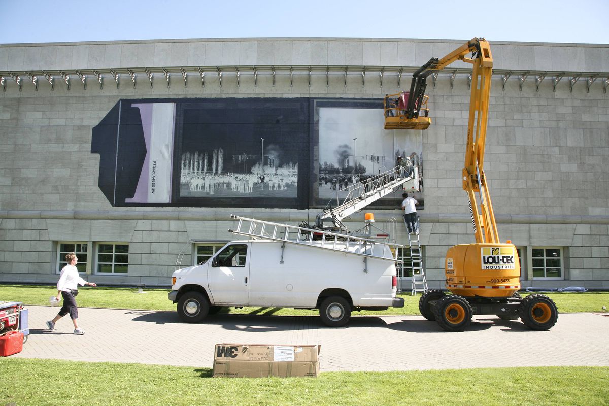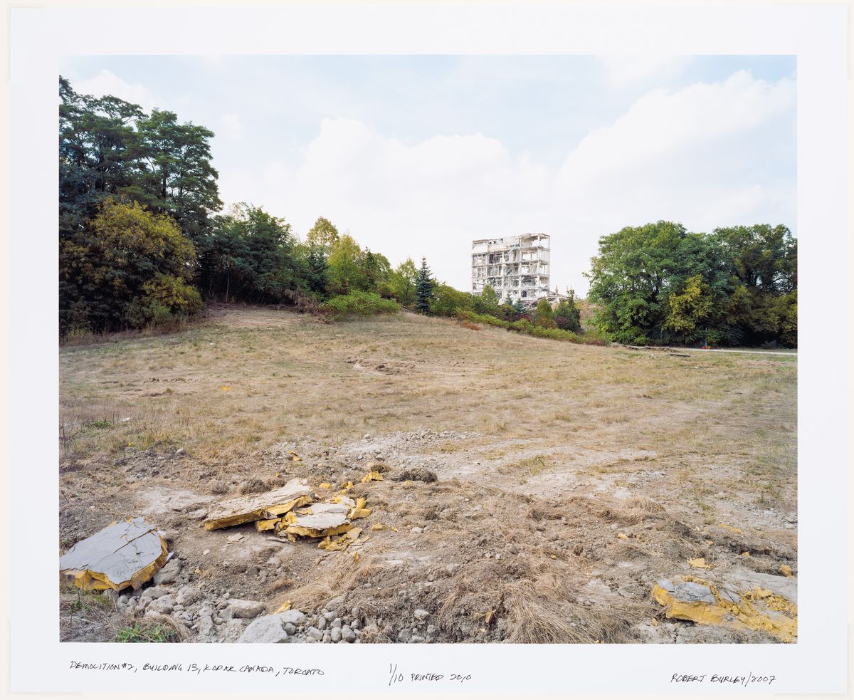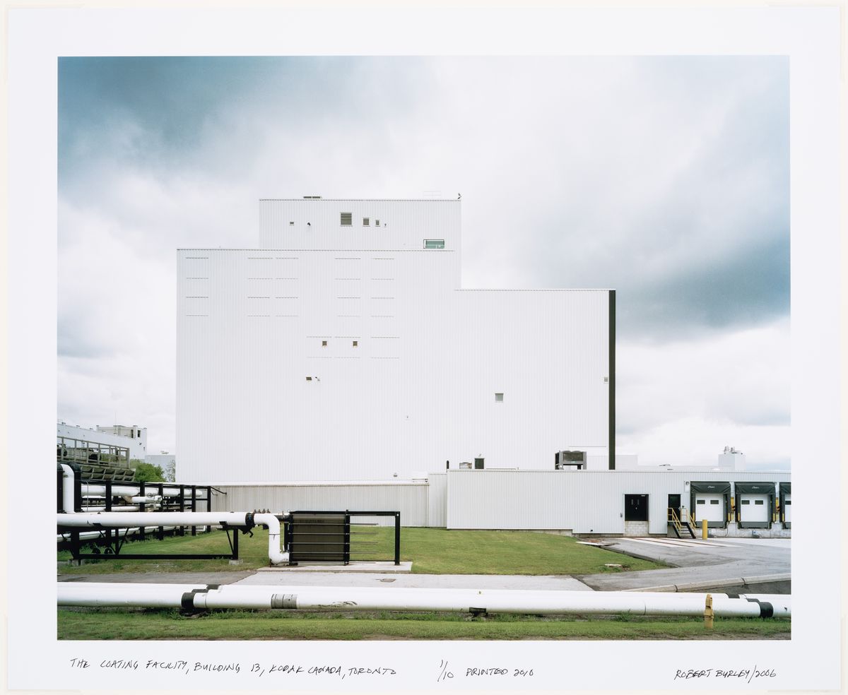 After the Mount Dennis plant was demolished in 2007, I began to suspect that perhaps I wasn’t just documenting the closing and demolition of a specific plant, but that I was in effect documenting the disappearance of film; of the thing, of the material that I used to make pictures. I went on to make a series of pictures of implosions at Kodak plants, including in Rochester, New York, where Eastman-Kodak headquarters are located, and across Western Europe, including in Chalon-sur-Saône. The photograph I took from that implosion was created as an installation for the north facade of the CCA, and I decided to present it as this large kind of Polaroid. It’s a specific positive-negative peel-apart Polaroid image on the facade of the building because one, I really wanted to address this impending obsolescence of this material, which is now gone: you can’t get it anymore. I also wanted to kind of bring forward that idea of what photography has been; that quality of the medium.