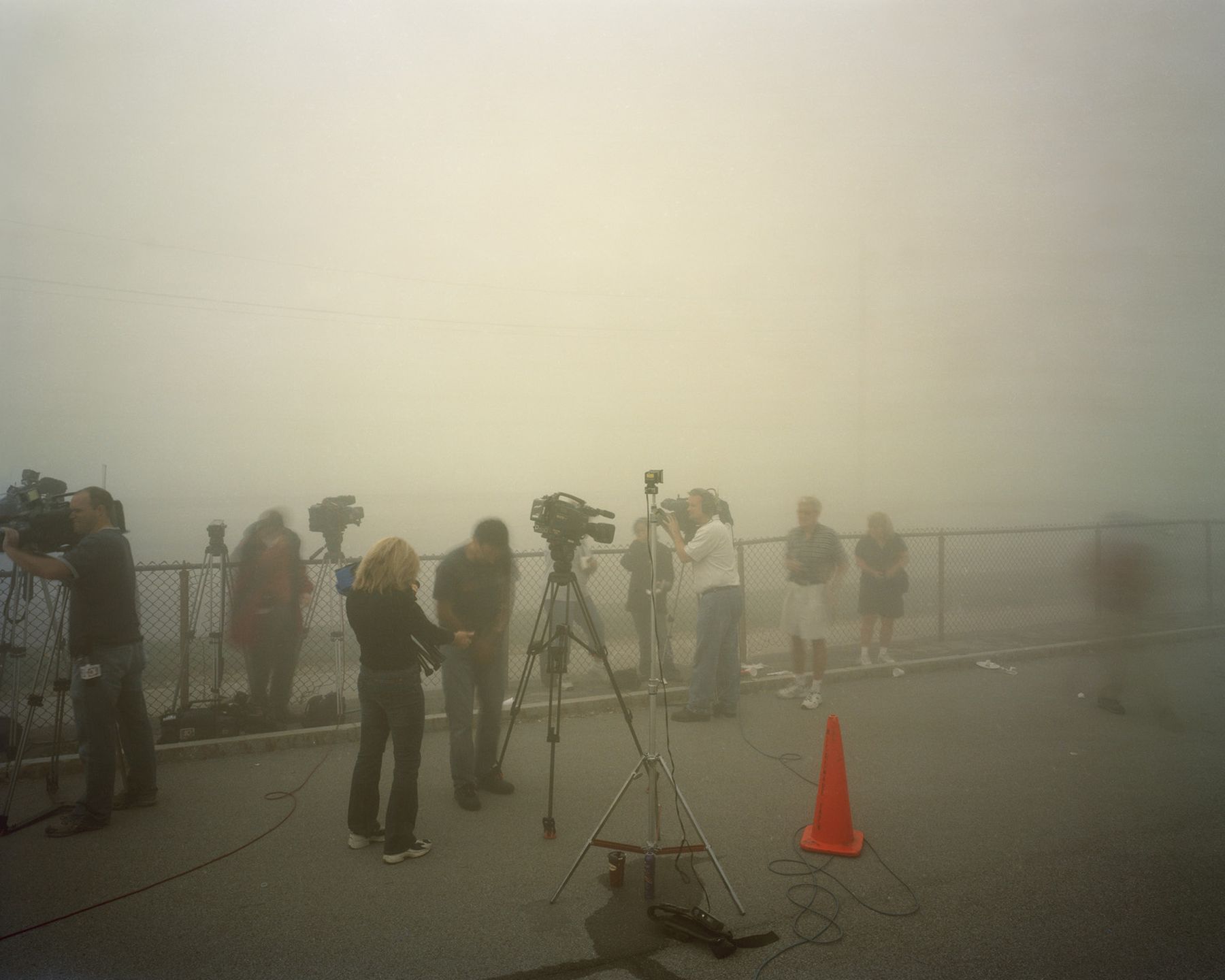 My photographs of the disused factories and of the implosions rely on photography’s most important attributes: its ability to describe accurately and in detail. They are meant to serve as records, documents and authentications of these events—I was there, this is what it looked like, here’s a photograph to prove it. However, I believe they not only signal the end of photographic film but also our relationship to physical media in general. At the implosion sites, I was probably the only person making photographs on film; if we look into the crowd, we see digital capture devices of all kinds glowing with displayed images of the events unfolding before them. By this time, the electronic chip known as the charge-coupled device, or CCD, had usurped the previous role of photographic film. Faster, cheaper and more flexible for most societal applications that have used film in the past: it’s not only a newer technology but quite simply a better one.1 As early as 2002, it matches the quality of film and it is affordable enough to be employed in both mass consumer and professional markets, creating a domino effect in the global photographic industry.