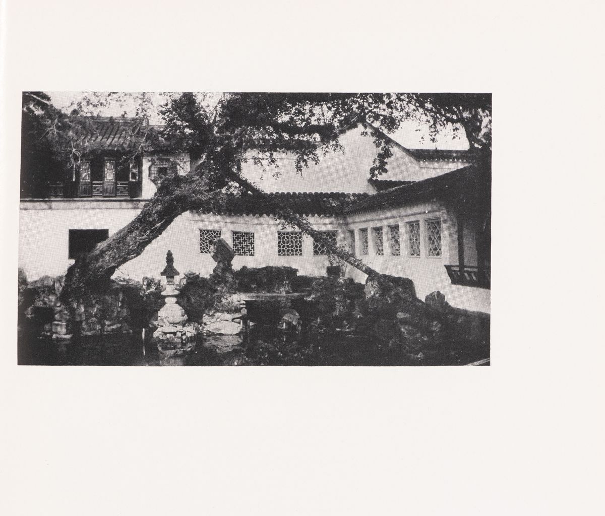 The earliest photographs of Chinese gardens were black-and-white due to the many technical limitations of colour photography. These photographs were taken by Jesuit missionaries, art enthusiasts, and diplomats (or their wives).1 One author and photographer, Florence Lee Powell, explained that black-and-white photography was a deliberate medium for her to document the experience of walking in Chinese gardens, as the medium provides “a more accurate picture of the gardens which are not studies in vivid and exotic colour, but tone poems in the quiet hues of grey in rocks and garden walls.”2 Perhaps her readers could therefore avoid being distracted by the various colours present in Chinese gardens? The monochromatic appearance of these gardens in publications including Powell’s may have better aligned them with Western perceptions of Japanese rock gardens, which were considered “modern” because of their free-flowing spaces, framed views, and sparse aesthetic. Walter Gropius’s 1960 essay on the Katsura Villa, which was accompanied by photographs by Yasuhiro Ishimoto, forwards perhaps the most famous reading of the modern qualities of Japanese gardens.3