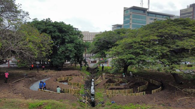- That’s definitely the prevailing mindset. It also makes me think of how we’ve lost an understanding of seasonal patterns and the land we live on, for example we have forgotten or ignored how rivers traverse our landscapes. So we build in its way, and put all these vertical impermeable surfaces, walls, pavements, so the water has nowhere to go but accumulate in areas that really make the most vulnerable in our society even more in peril. There are decreasing soil ecosystems with plants and fungi that can capture, slow down, temporarily store, and eventually clean the water. Being in Kenya, it was inspiring to experience the amount of green around me—and the shift in quality of life that that brings.