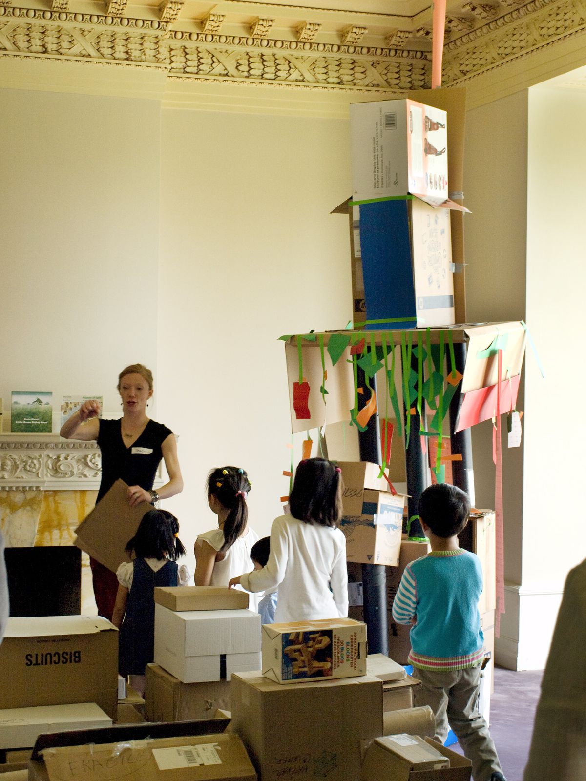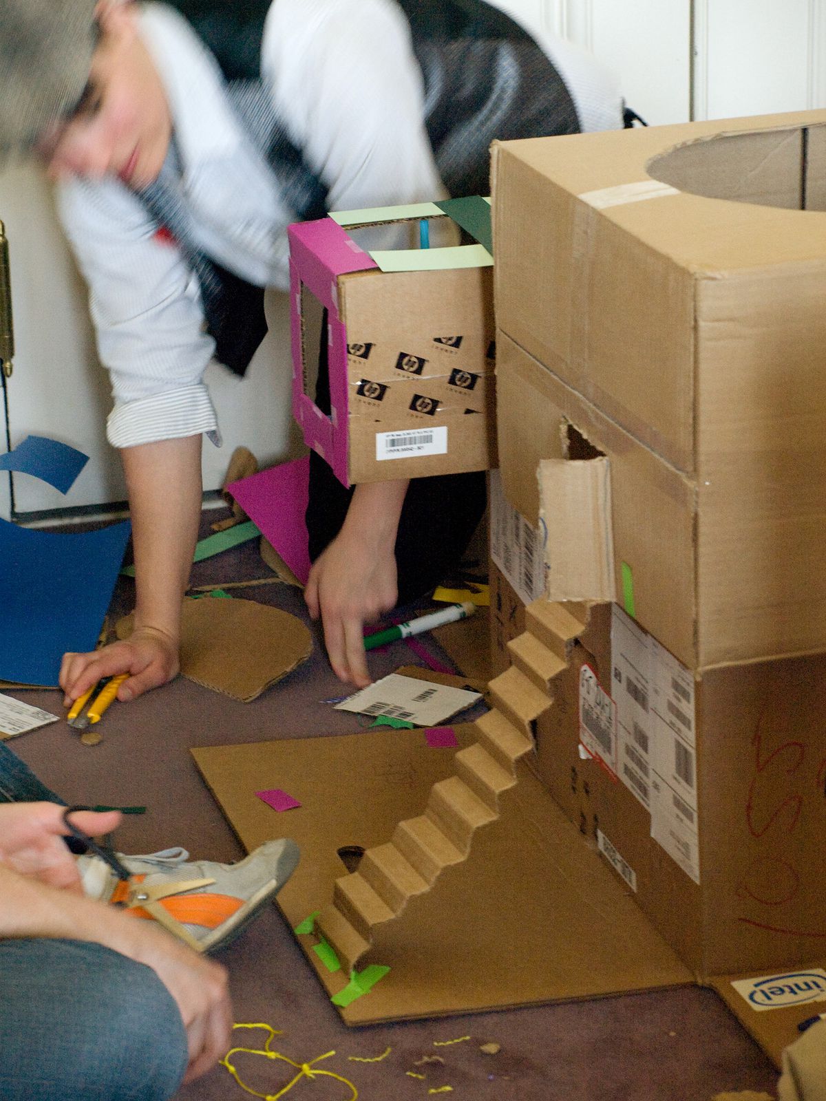 Families explore the creative potential of a recycled material by building houses and other imagined structures in cardboard. Inspired by the exhibition 1973: Sorry, Out of Gas (2007), Cardboard Houses introduces innovative ways of building that have a reduced environmental impact.