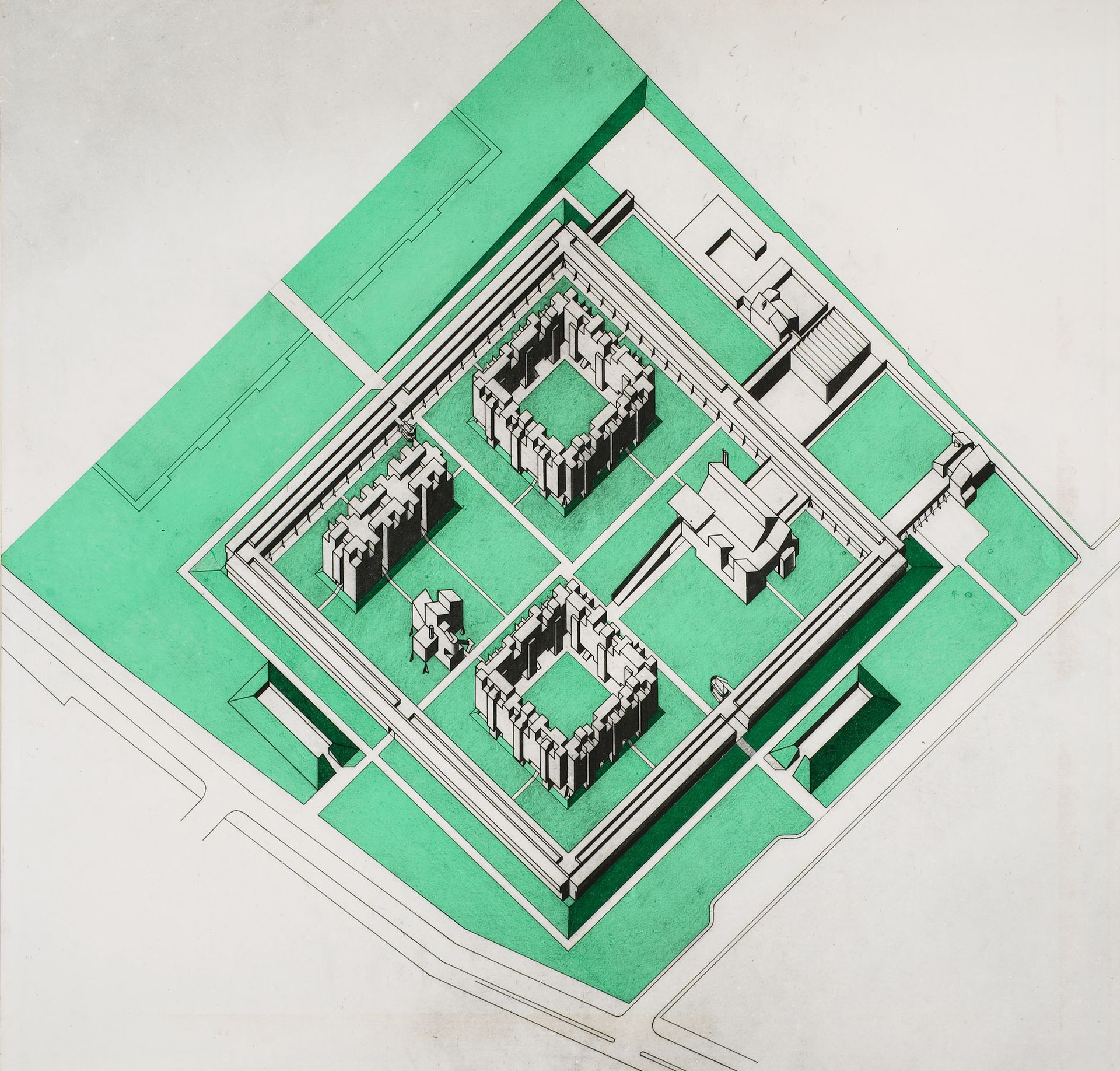 From his earliest education at the Liverpool School of Architecture, captured in his undergraduate thesis for Newton Aycliffe and its struggles with Le Corbusier, the archive illustrates his growing engagement with regionalist modernism and his emergence from the shadow of formidable teacher Colin Rowe. Publically this culminates in his highly original Leicester University Engineering Building, a programmatically and technologically contemporary project with historical and functional associations.