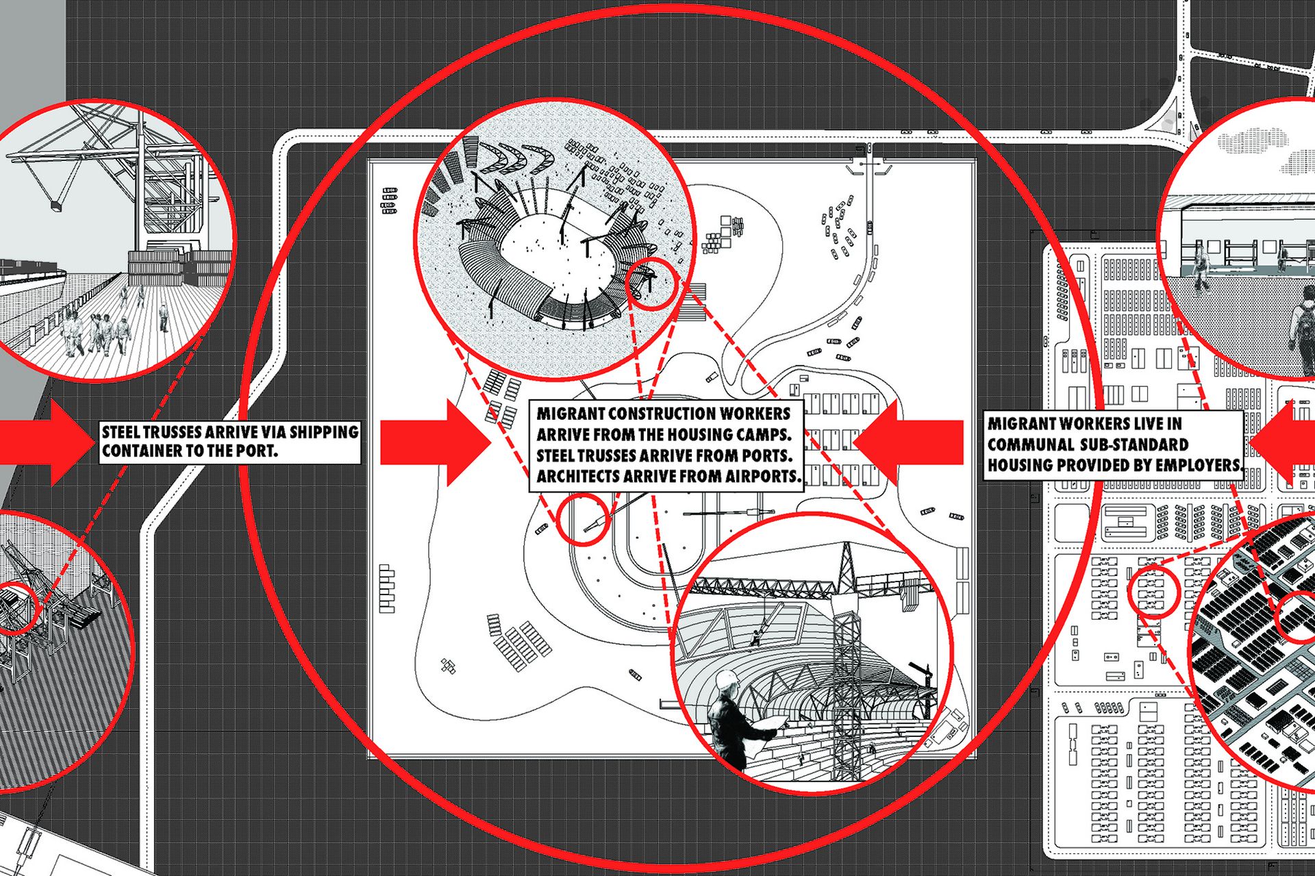 Mabel O. Wilson and Jordan Carver present the ongoing advocacy project Who Builds Your Architecture? (WBYA?), which asks architects and allied fields to better understand how the production of buildings connects their practices to migrant construction workers who build their designs. WBYA?, a group of designers, scholars, and activists based in New York City, has extensively researched the networks, modes representations, and processes of the global construction industry. WBYA? has held public panels and workshops that delve into networks linking construction workers and architects. Through exhibitions and publications, WBYA? seeks to inform the design disciplines and professions of the importance of developing an ethical response to critical matters of human sustainability.
