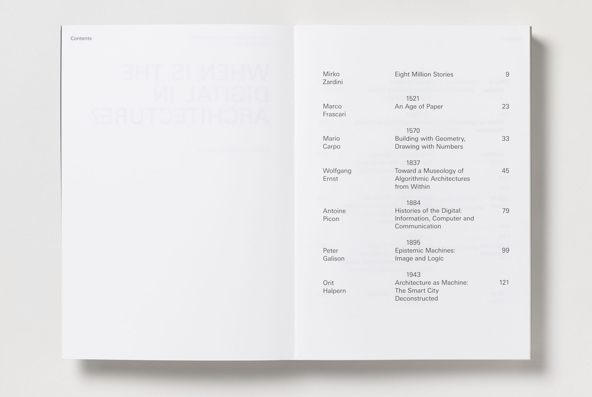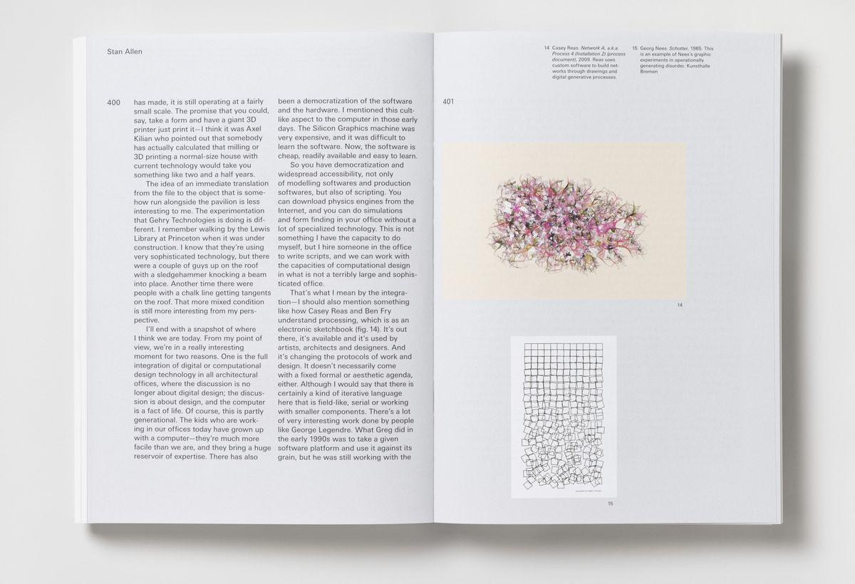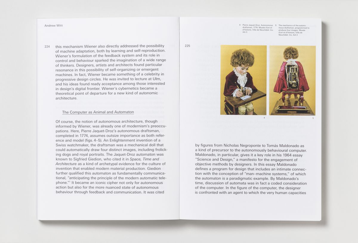 Texts by Stan Allen, Phil Bernstein, Nathalie Bredella, Mario Carpo, Wolfgang Ernst, Marco Frascari, Peter Galison, Orit Halpern, Greg Lynn, Antoine Picon, Molly Wright Steenson, Bernard Tschumi, Mark Wigley, and Andrew Witt