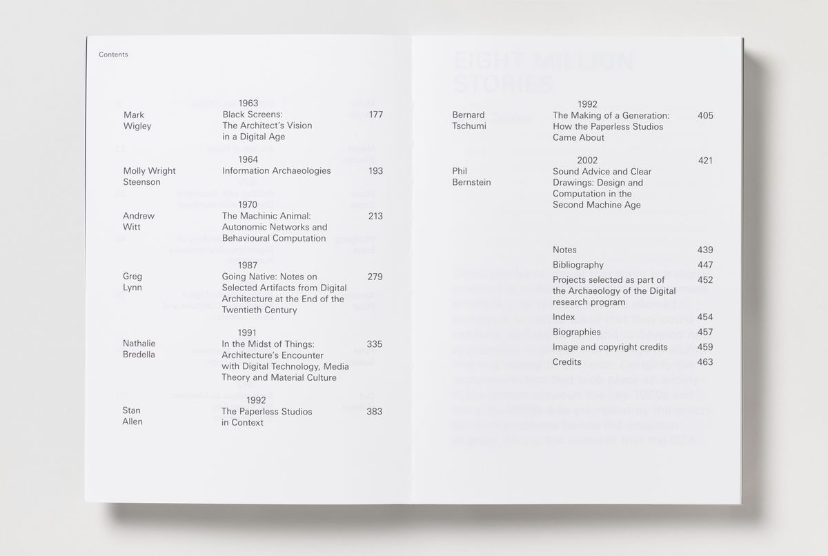 There are eight million stories of the origins of the digital in architecture, and this book brings together fourteen of them in a chronology of responses to the question of when the digital is in architecture. The arguments address specific changes in ways of thinking about architecture, building, and cities, as well as the shifts in technology that resulted from these changes, marking both a capstone to Archaeology of the Digital and the beginning of an investigation of other beginnings of the digital in architecture.