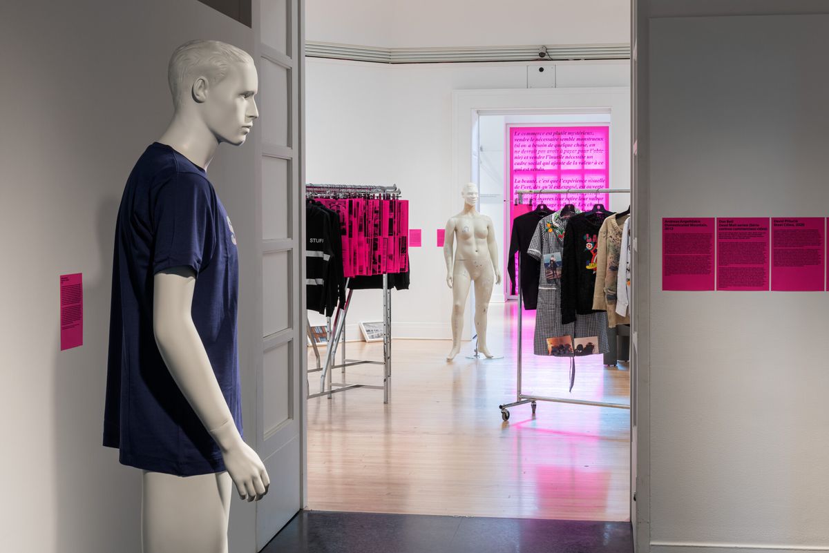 Chapter III: Renaissance engages with the museum itself as a site of cultural production and consumption, and the CCA Octagonal gallery poses as a retail space under transformation. Latent within visual culture is the interplay between techniques of art-making, techniques of display, and techniques of exhibition. Claire Fontaine and Alex Bag question the social frameworks that determine use values. Heimo Zobernig and TELFAR use ready-mades to represent the commodification of the artist and the designer. Anonymous Club pushes the boundaries of the runway into the museum, occupying an institutional space as an open studio for experimentation. Akeem Smith and Canal Street Research Association act as archivists in their creative practices, tracing movements and mutations of culture. Victoria Colmegna, Richard Sides, and Gili Tal produce artists’ garments as a format to repurpose and deprogram icons and language. Georgie Nettell renders pervasive data systems and exploitative economic models as neoliberal forms of abstraction. David Chipperfield Architects and Atelier Barda create fluid commercial spaces operating between the real and the virtual. Ibrahim Mahama transforms discarded vessels of global exchange into cultural sites. By engaging with retail through various media and techniques, artists and designers exploit their position within systems of cultural production to reveal new values and models.