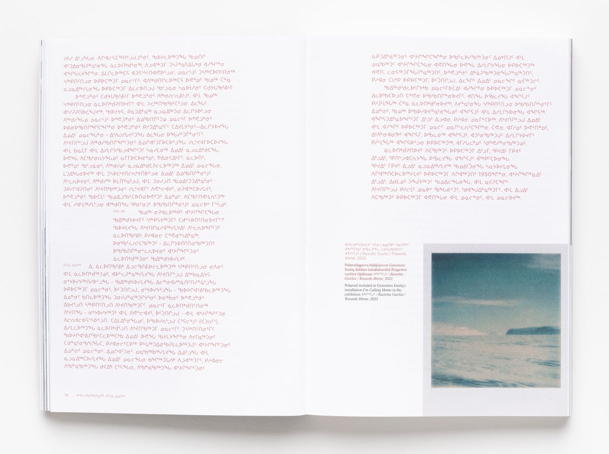 This publication is conceived in conjunction with the exhibition ᐊᖏᕐᕋᒧᑦ / Ruovttu Guvlui / Towards Home, organized by and presented at the CCA from 11 June 2022 to 26 March 2023, and at the University of Toronto Daniels Faculty from 25 October 2023 to 22 March 2024