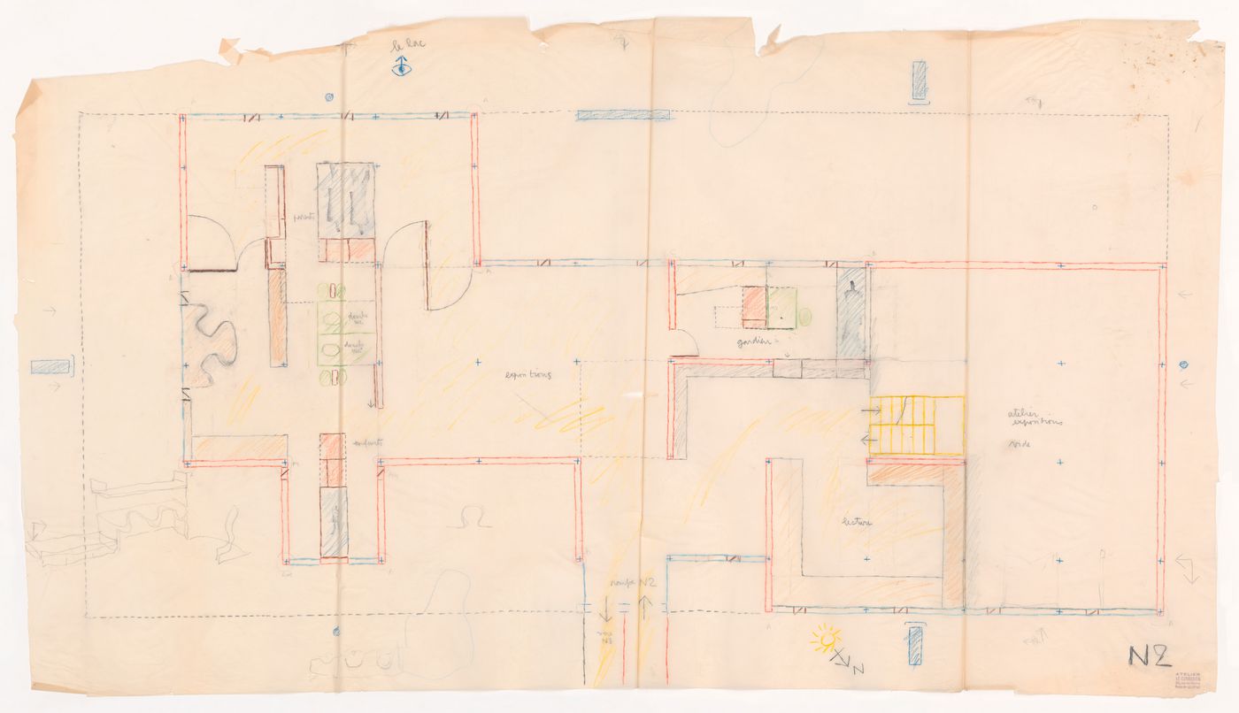 Drawing in coloured pencil with graphite on translucent paper